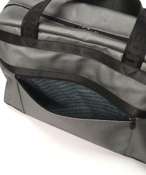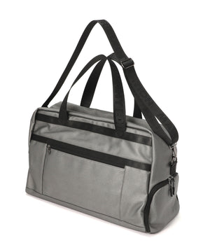 機能的なポケットや収納スペースを多数装備し利便性を高めた、ショルダーベルト付きのテープ使いボストンバッグ。
