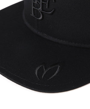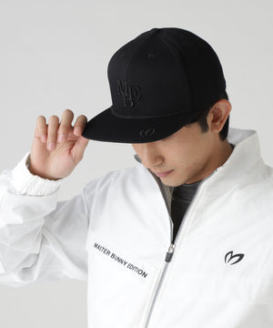 立体感のある無配色調のMBEロゴがポイントになった、ツイルフラットブリムキャップ。