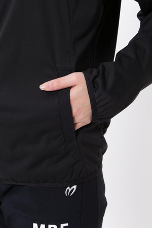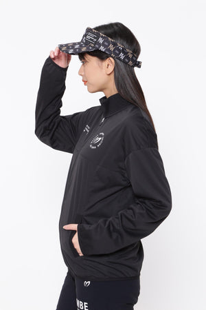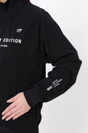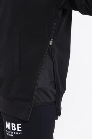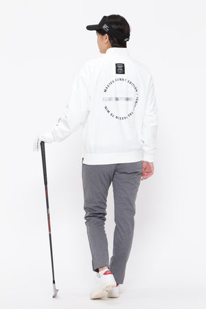 クルーネックのアウターとフルジップブルゾンのインナーをレイヤードさせた快適構造の、ポリエステルドビーストレッチコーティングツインスニードジャック。ハイレベルでのストレッチ、撥水防風性など、数々の高機能性を兼ね備えた、毎シーズンご好評頂いているプレイアウターです。MBEのロゴでインパクトを与えたクルーネックのアウターは、ニットやスウェットなども重ね着しやすい快適でスッキリ見えするシルエットを採用。ベンチレーションにもなり、着脱を容易にするサイドファスナーを施して快適性をアップ。強度としなやかなストレッチ性、撥水、防風効果を発揮する表生地と、裏地にはイヤな纏わりつきやパチパチ感を抑える保温性と制電性を両立した太陽光吸収型保湿制電素材のソーラーセンサーLを採用。サークル型のアートロゴでインパクトを与えて襟元をリブで切替したジップアップインナーは、ドライタッチでスルッとした肌触りの良いポリエステルを使用。ニットなどの下に着用することで、ポロシャツとの摩擦も軽減されるのもポイント。気温などに合わせて色々な着方ができるので、運動量が多く天候が変わりやすいゴルフシーンにおいて大活躍するアイテムです。