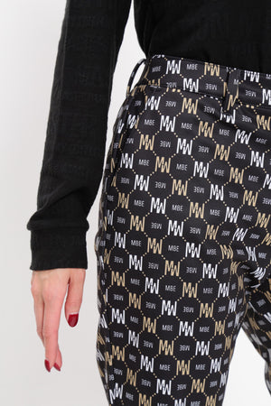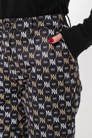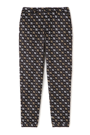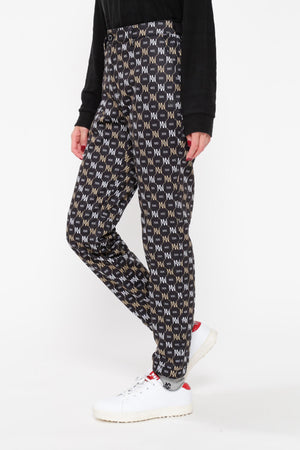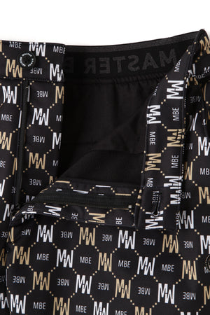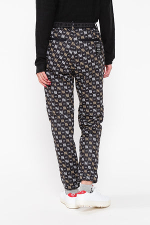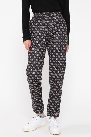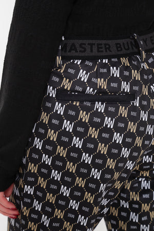 部分使用したMBEロゴのゴムベルトがさりげないアクセントになった、モノグラム柄のニットボンディングパンツ。伸縮性の良い薄手ニットの表側と、 足を入れた瞬間から温かさが感じられる起毛加工をしたフリースニットを裏側に採用したボンディング素材のパンツです。撥水効果のあるポリウレタンフィルムを使用することで、冷たい風をシャットアウトしてくれる防風性も兼ね備えた寒さ対策にオススメのアイテム。ゴルフ、アウトド、レジャーなど、様々なシーンで活用できる一本です。
