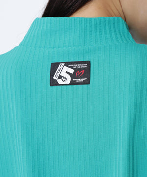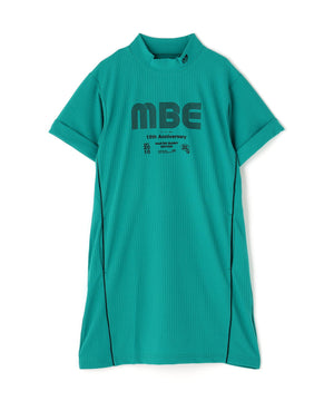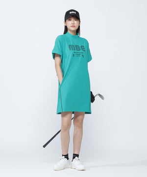 15thのフロントロゴがポイントの、サッカーストライプ半袖モックネックワンピース。