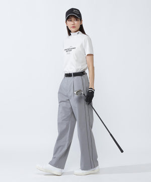 少しワイドめなトレンドのシルエットで美脚効果も期待できる、ゴルフからデイリーまで幅広いシーンで活用する事ができる汎用性の高い一本です。