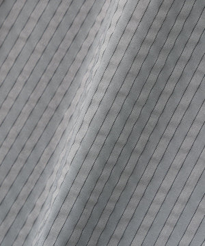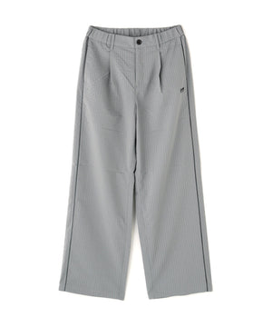 サイドに入れたパイピングラインがコーディネートのポイントになる、ストライプパンツ。
