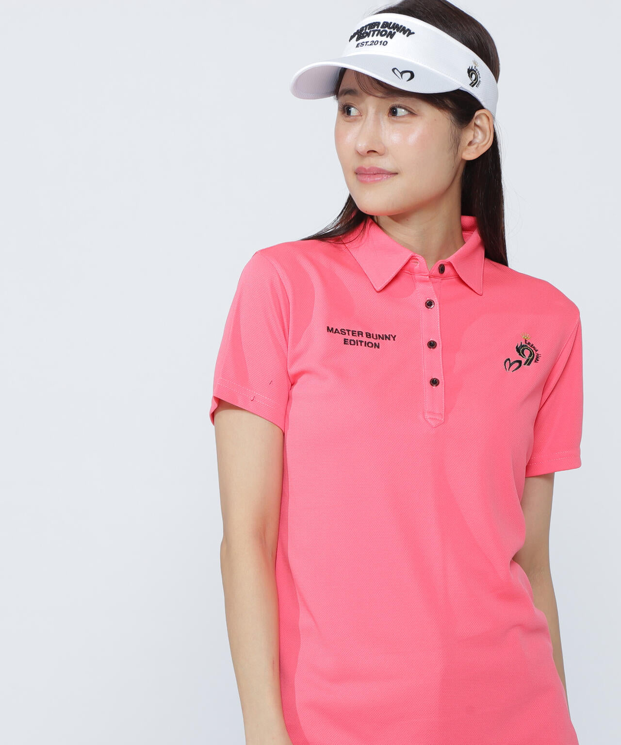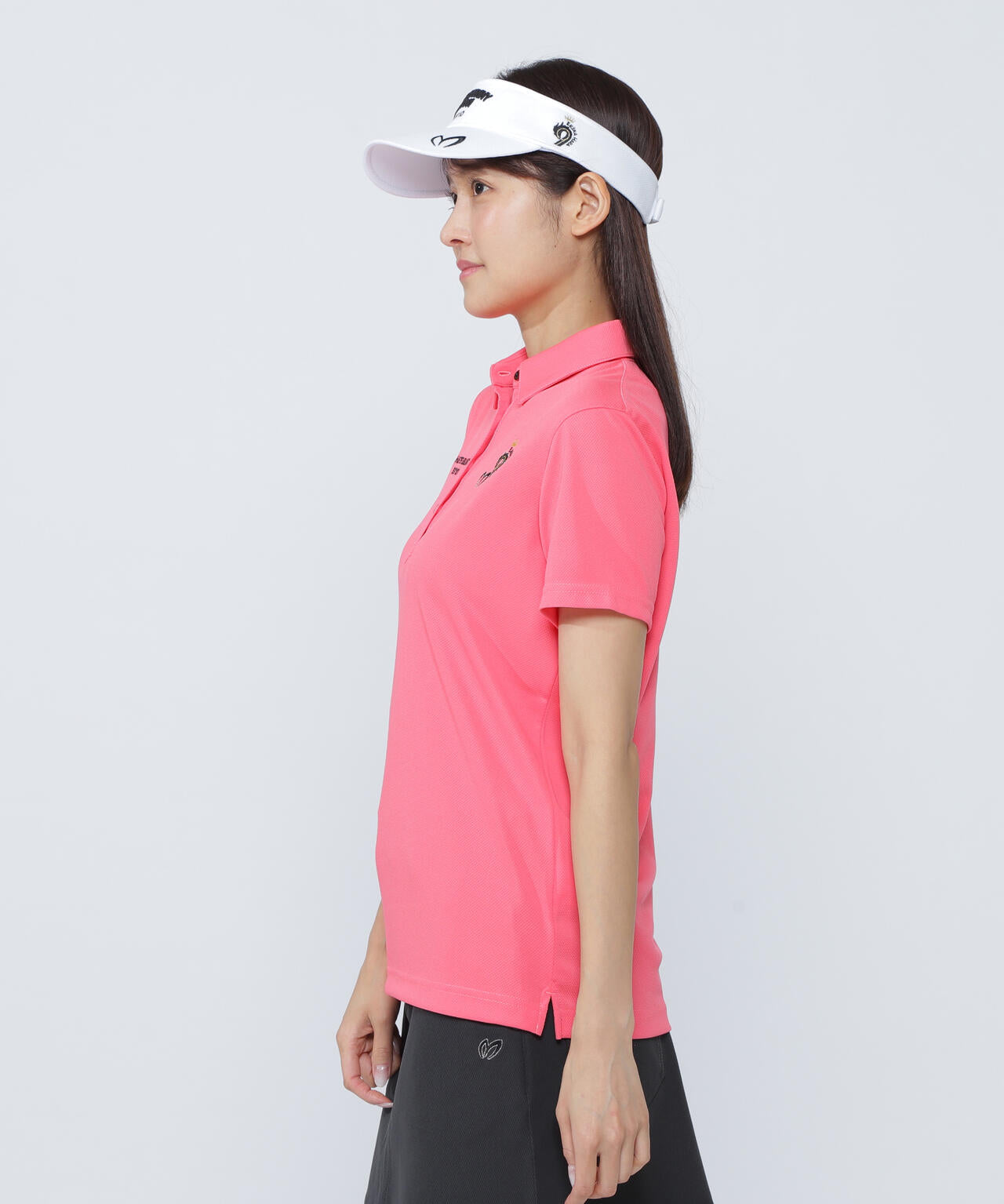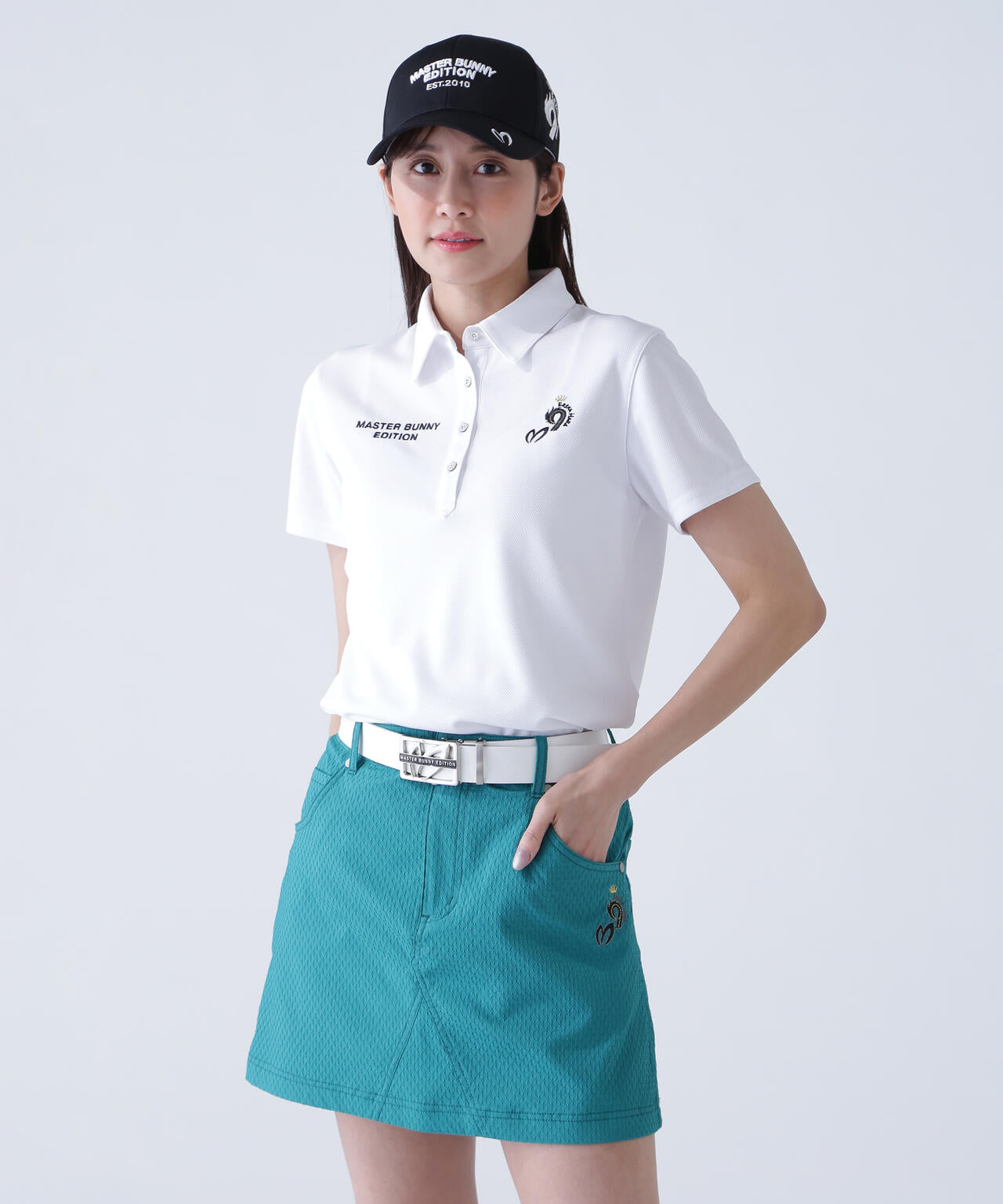 細かい亀甲柄のハーフメッシュ素材で通気性があり、汗をたくさんかく夏のゴルフを快適に過ごせるポロシャツです。