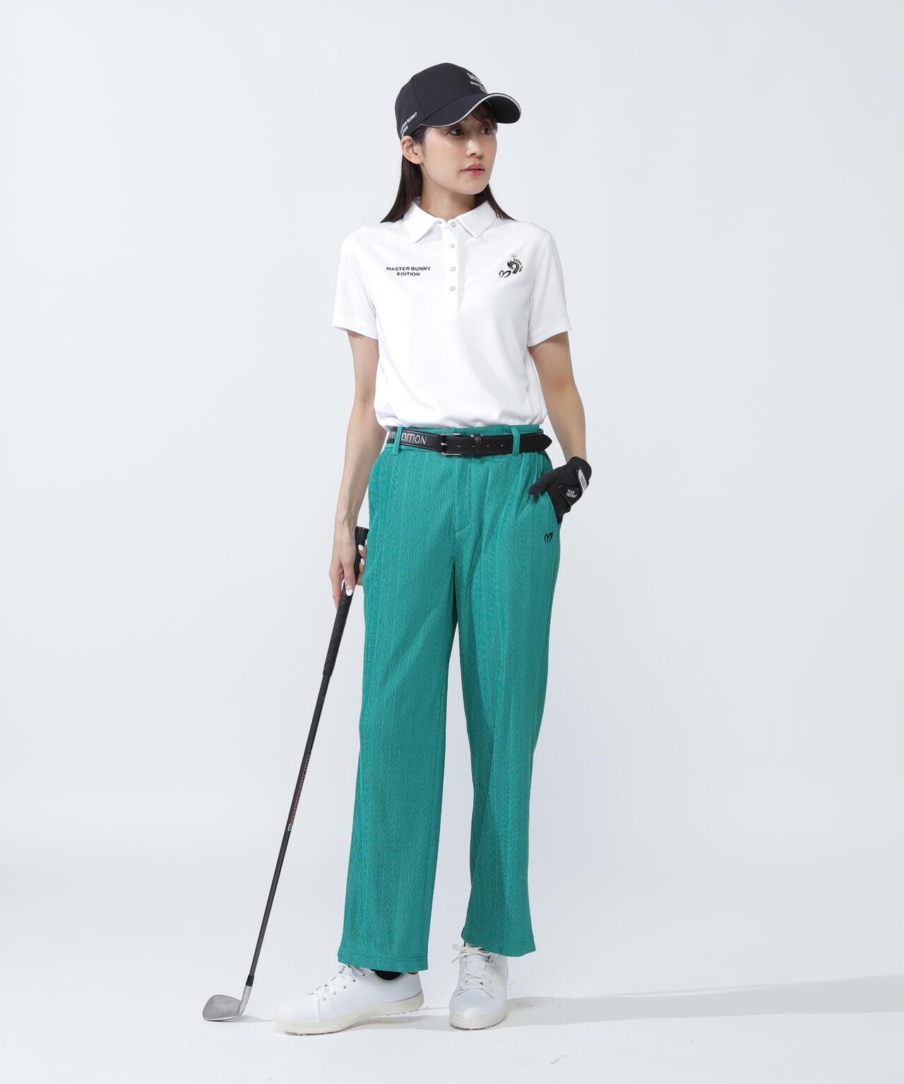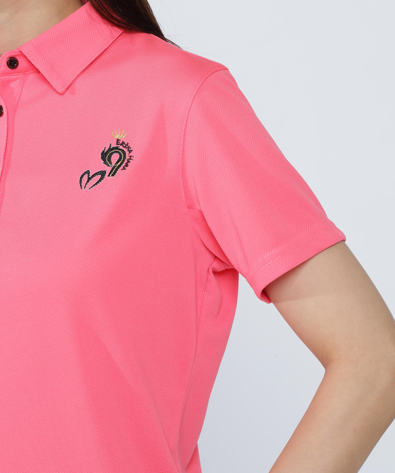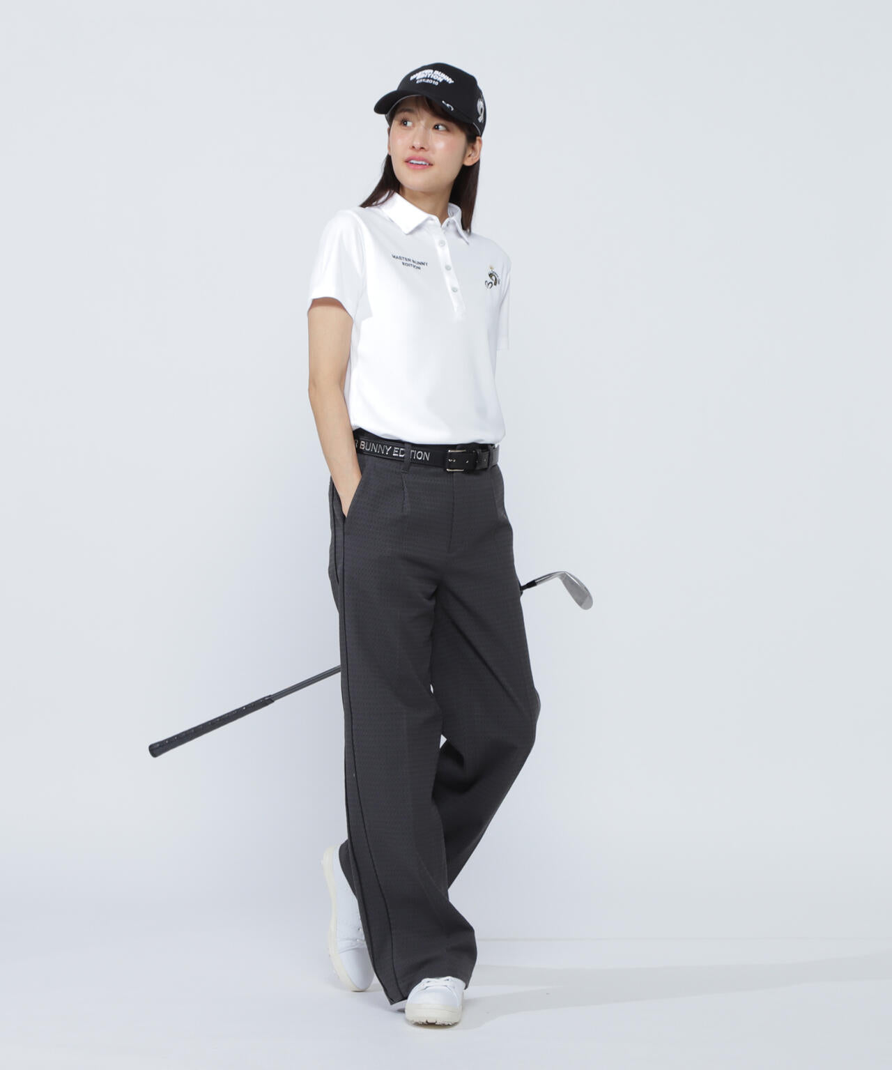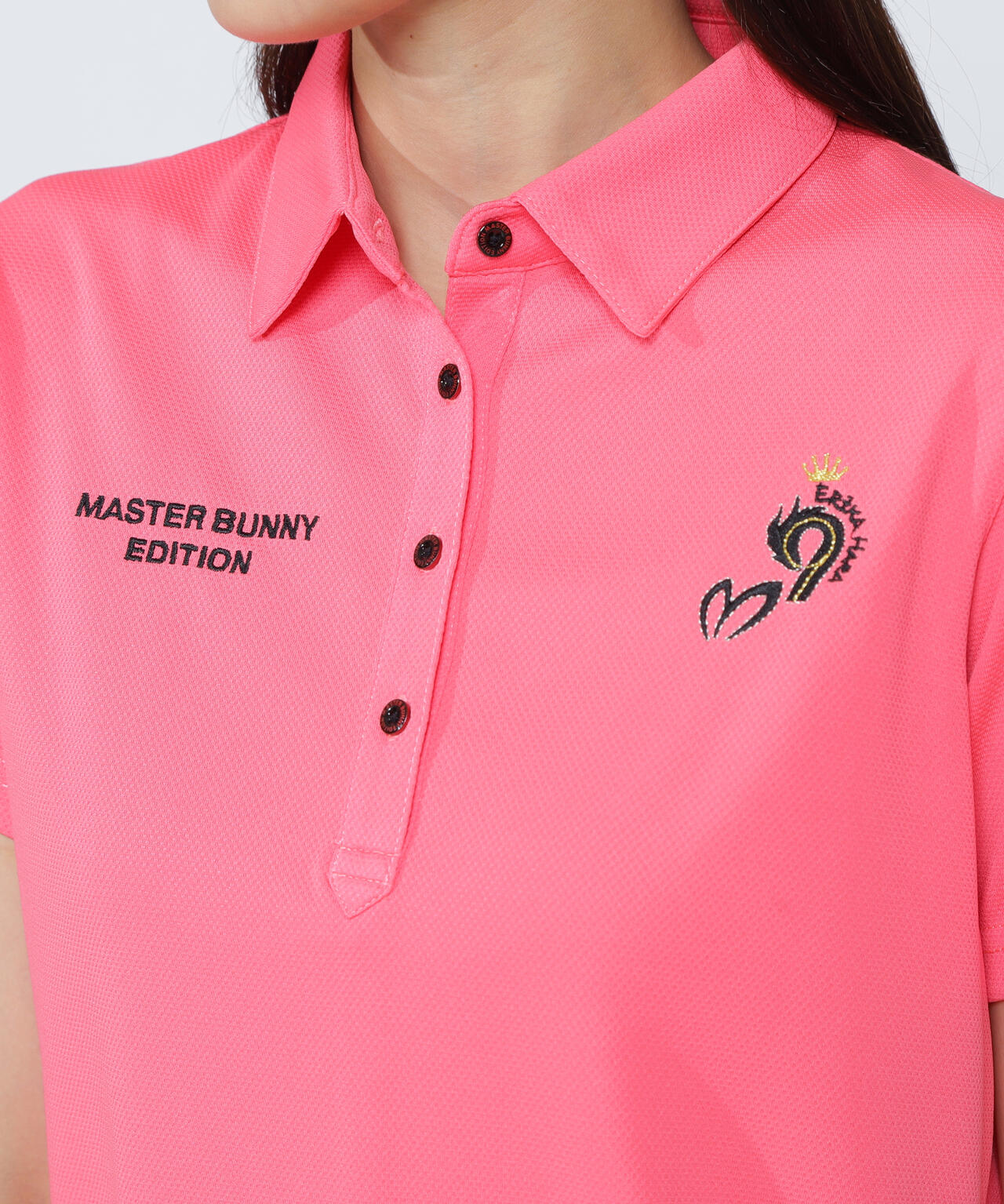 細かい亀甲柄のハーフメッシュ素材で通気性があり、汗をたくさんかく夏のゴルフを快適に過ごせるポロシャツです。