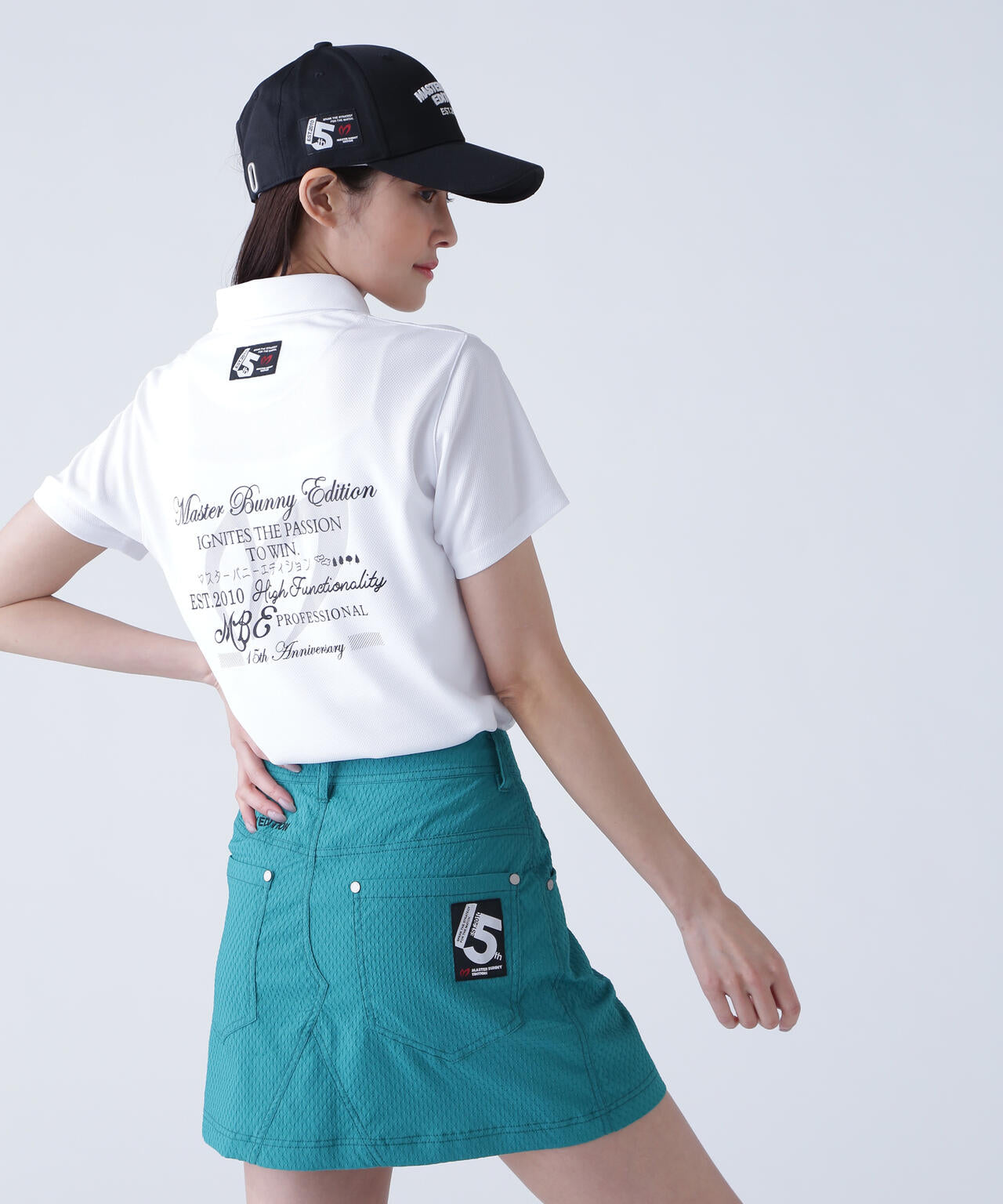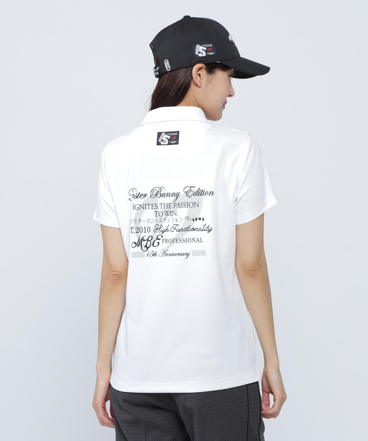 15年を経てアップグレードしたNEW MBEのグラフィックをインパクトたっぷりに表現した、ミニ亀甲メッシュ半袖ポロシャツ。