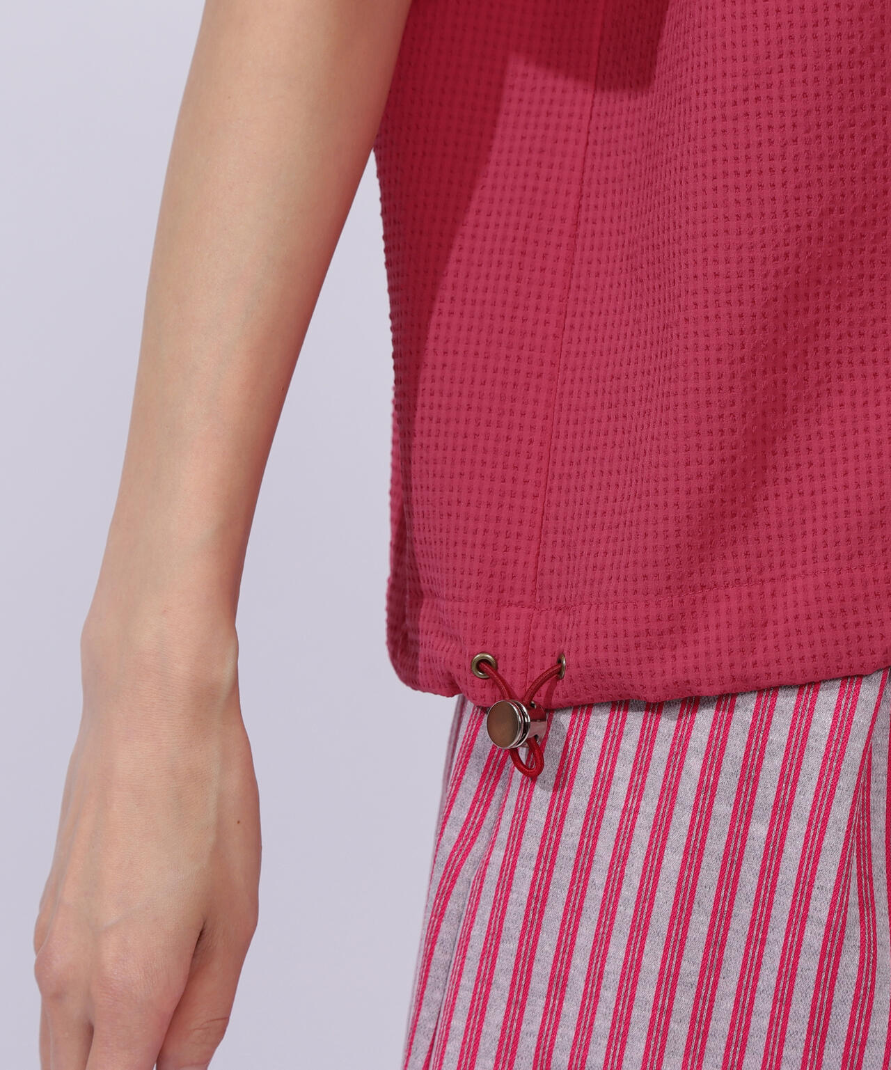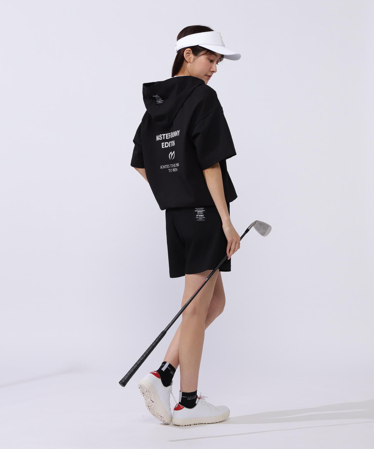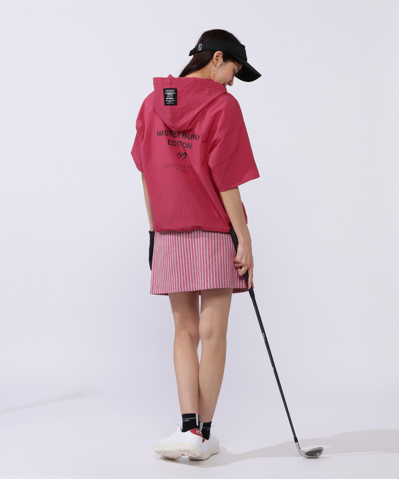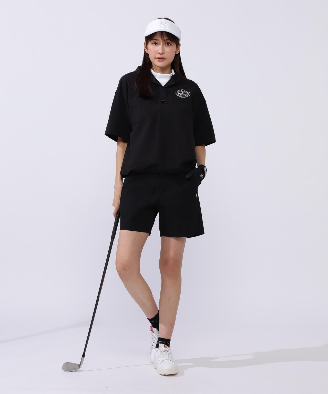 洗練されたイメージでスタイリングの鮮度アップにも重宝する、サッカーストレッチ半袖フーディプルオーバー。ストレッチ性、形態安定性に優れてたバネ状の分子構造により、身体の動きに合わせて伸縮して快適な着心地を実現するタフな高伸縮機能糸のTEXBRIDを採用。また、凹凸がある通気性の高さが魅力のサッカー生地を使用して、汗をかいてもムレを軽減した肌離れが良いサラッとした風合いを保ちます。裾にドローコードを入れてシルエットのアレンジを楽しむこともできる、着膨れしないゆったりとしたシルエットで作られています。合わせるアイテム次第で様々なスタイリングを楽しめる、ゴルフ練習場などのゴルフシーンに限らず、アウトドアで、デイリーユースで大活躍する逸品です。同素材でご用意のある、スカートとのセットアップコーデもおすすめです。