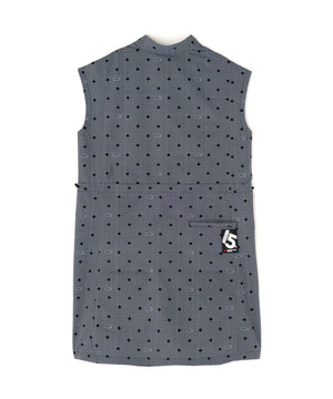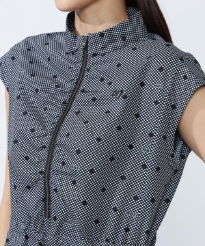 15thロゴや胸元のMロゴマークがさりげないアクセントになった、SPX×TEXBRIDプリント ハーフジップアップ スリーブレスワンピース。