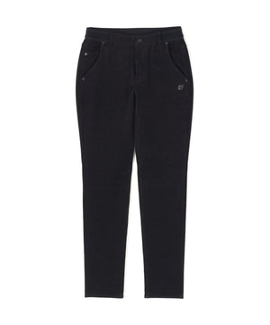 表面を起毛させることで繊維の間に空気が多く含まれ高い保温性を発揮する素材で作られた、ドビーストレッチ起毛パンツ。