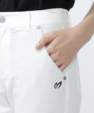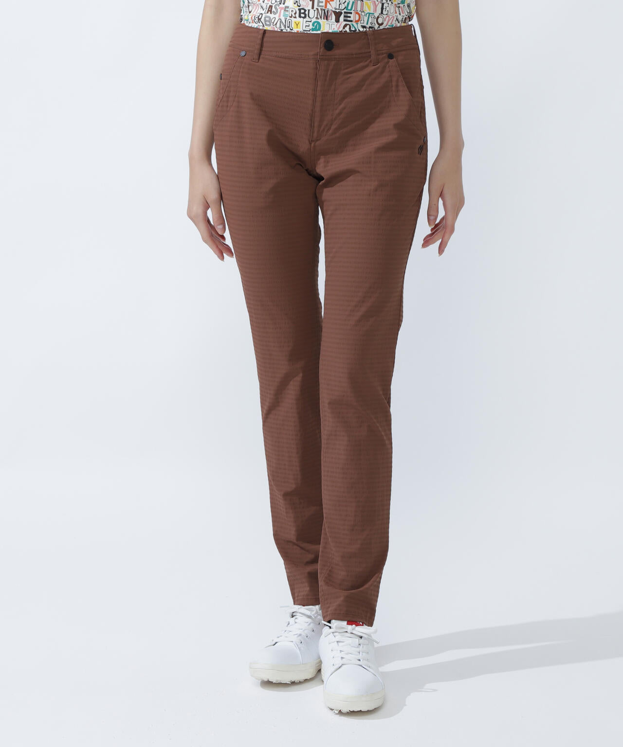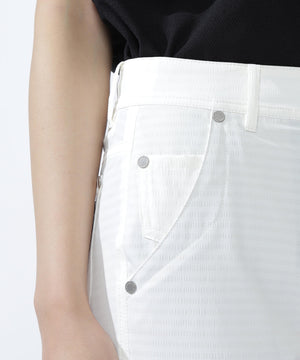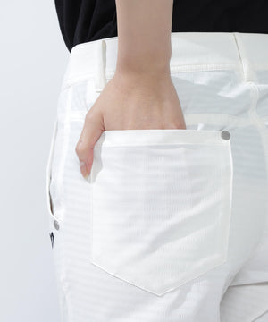 立体感のある独特の表情とスッキリしたシルエットでクリーンな雰囲気を与えた、ドビーボーダー5ポケットストレッチパンツ。