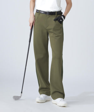 軽く伸縮性があり、弾力性と、シワになりにくい、上品な見た目の素材を使用した、屈伸やスイングがしやすく、動きやすい、快適にパフォーマンスする素材と独特のパターンで仕立てたパンツです。