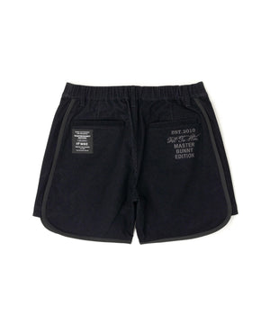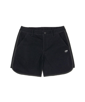 動きやすさとスタイルアップ効果が期待できるラウンドヘムデザインと、スポーティーを演出した無配色調のテープラインがポイントのショートパンツです。