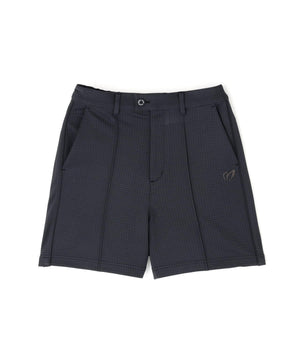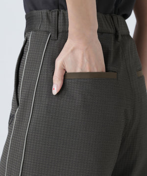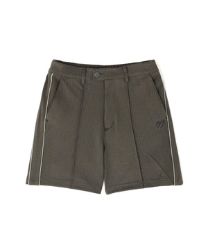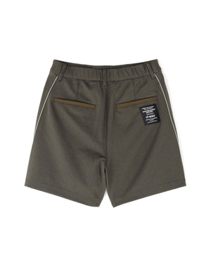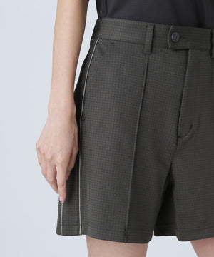 パイピングのサイドラインでスポーティーなアクセントを効かせた、幾何学柄ジャガードショートパンツ。