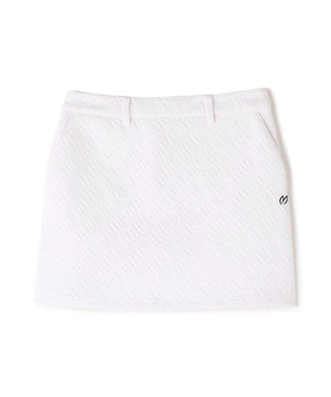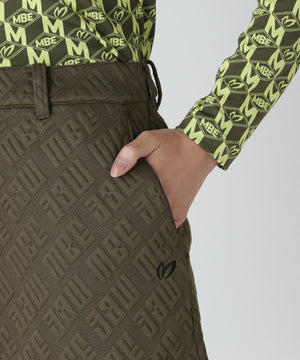 立体的に表現した斜めのMBEロゴを浮き立た、ロゴジャガードストレッチスカート。