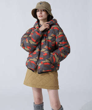 空気の層を作り出す軽くて温かい中綿を入れた、品よく光沢するハリコシのある丈夫なナイロンストレッチ生地を使用しています。