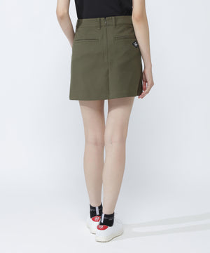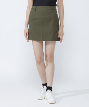 フロントの裾にプリーツを入れて動きやすさを追求した、台形型のスッキリしたシルエットのスカートです。