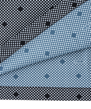 北陸産地の伝統的な糸加工技術「PIN仮撚」によって独特のふくらみと軽さが特徴のストレッチ糸のSPXと、形状回復性に優れた高伸縮機能糸で、シワになりにくく、型崩れしにくいという特徴があるTEXBRIDを採用。