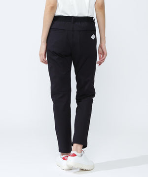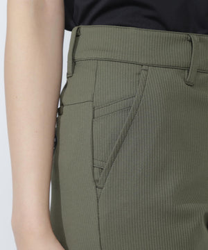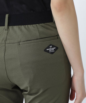 脚のラインが美しく見えるスッキリしたシルエットに、楽なはき心地が続くウエストの一部にゴムベルトを使用した作りです。