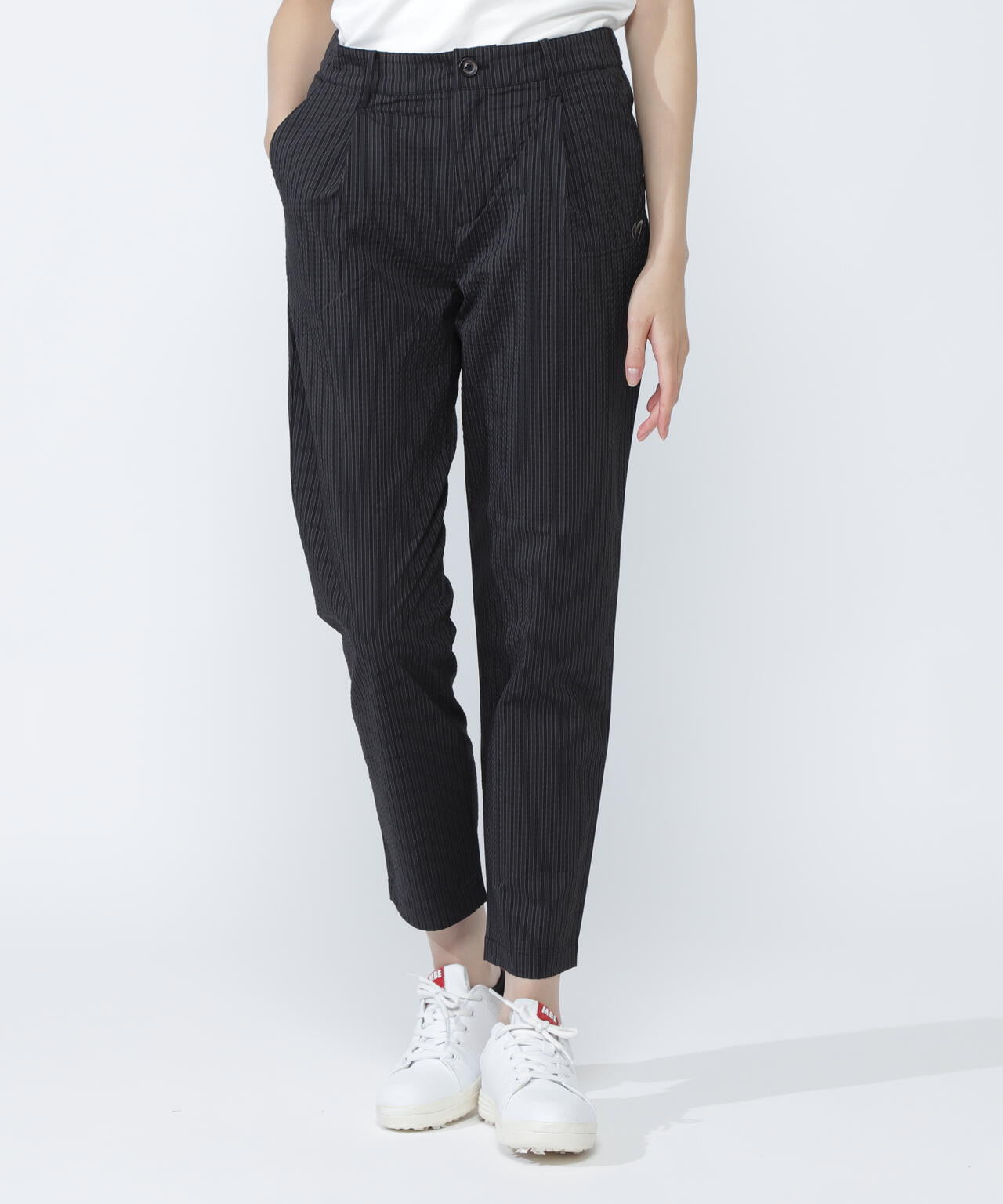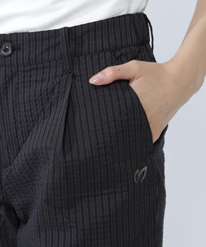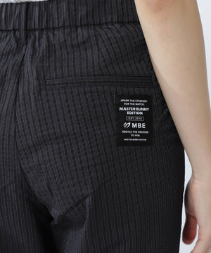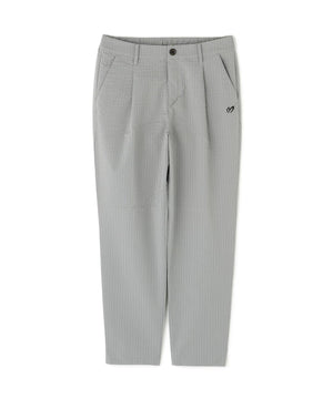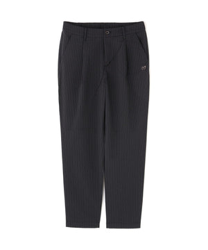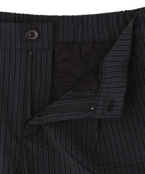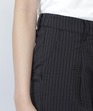 ワンタックを入れて腰まわりに少しゆとりを持たせた、ストライプパンツ。