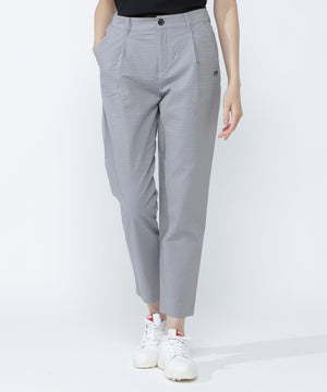 肌触りの良いポリエステルコットンにストレッチを効かせて細身のスッキリしたシルエットに仕立てた、スタイリッシュな印象のパンツです。