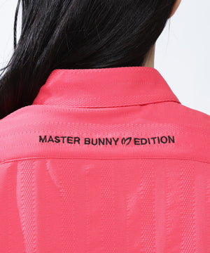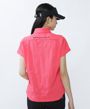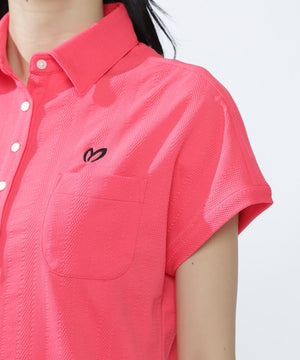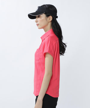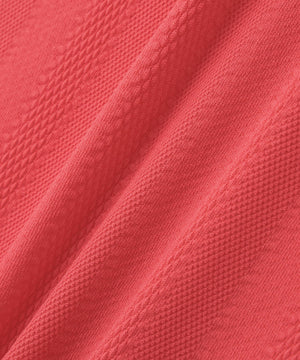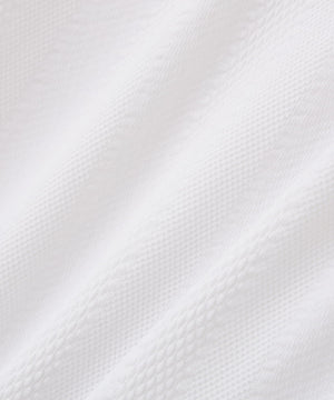 立体的な凸凹の模様で表情に奥行きを与えた、エコペットストレッチタックジャガードフレンチスリーブポロシャツ。