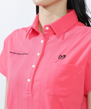 エコペットストレッチタックジャガードフレンチスリーブポロシャツ