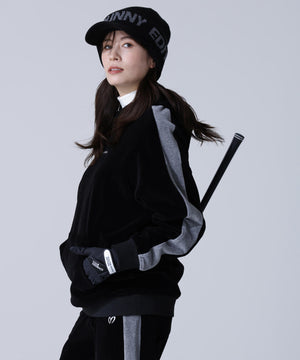 スポーティーなアイテムながらコーディネートが華やぐ、独特の柔らかな風合いと深みのある光沢感が特徴のベロア生地を使用。