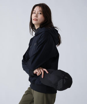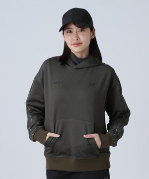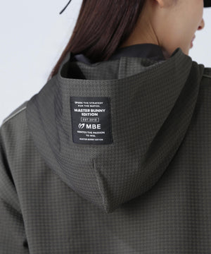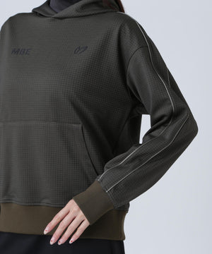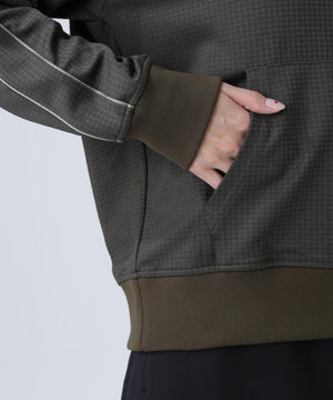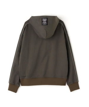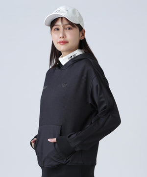 ジャガードで織り上げたポコポコとした凹凸のある生地感が特徴の、幾何学柄ジャガードフーディプルオーバー。