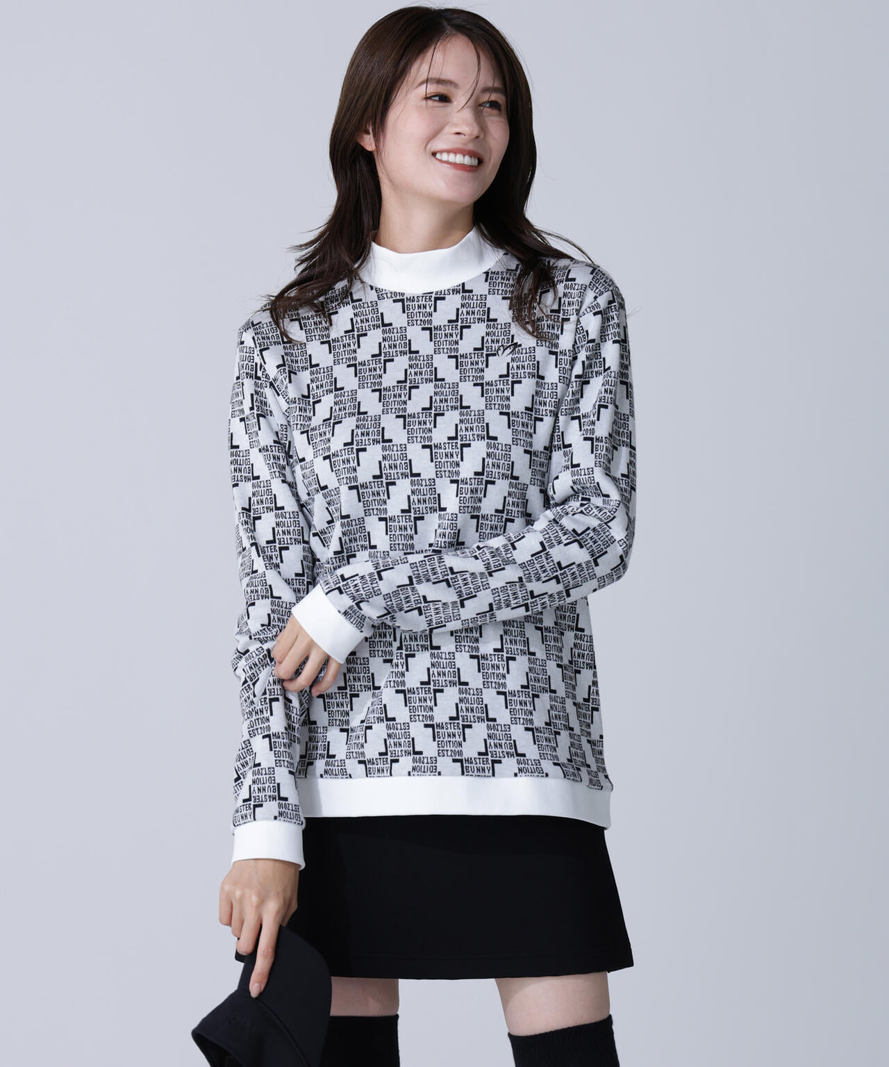 柔らかくしっとりとした肌触りが特徴の、チェックジャガード裏起毛長袖モックネックカットソー。
