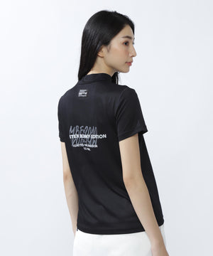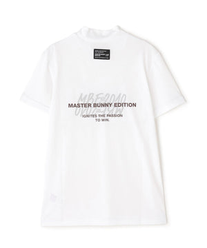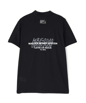 前後の身頃にあしらったグラフィックがコーディネートのアクセントになる、ベアメッシュ半袖モックネックカットソー。