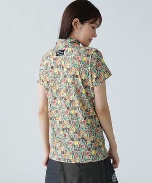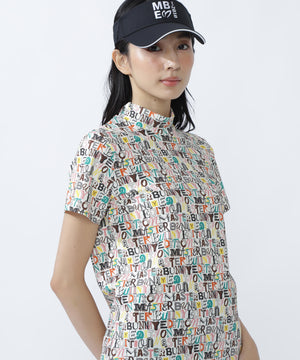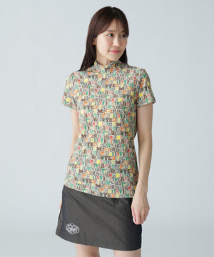 4WAYナイロントリコットマルチロゴプリント半袖モックネックカットソー