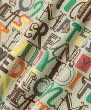 フォントや色味に変化をつけたロゴ柄がコーディネートのアクセントになる、4WAYナイロントリコットマルチロゴプリント半袖モックネックカットソー。