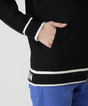 チクチク感を軽減したふんわりとした柔らかい風合いが特徴の、裏付きジップアップニットブルゾン。