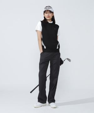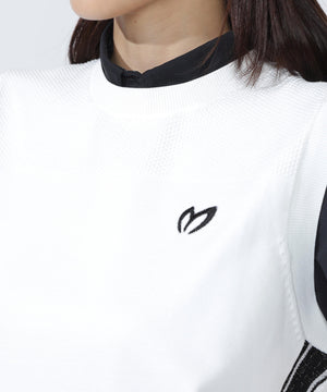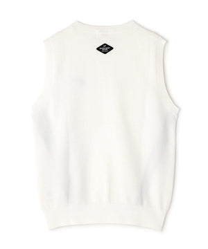 様々なインナーと相性抜群の、スポーティーなクルーネックのニットベストです。