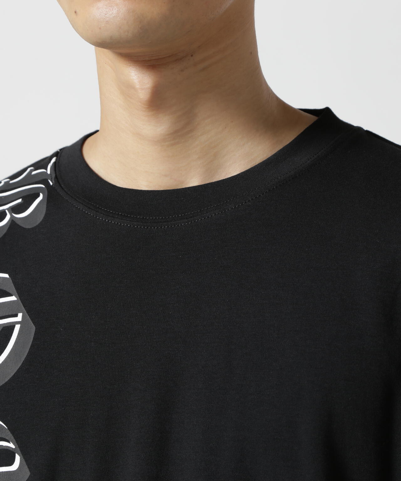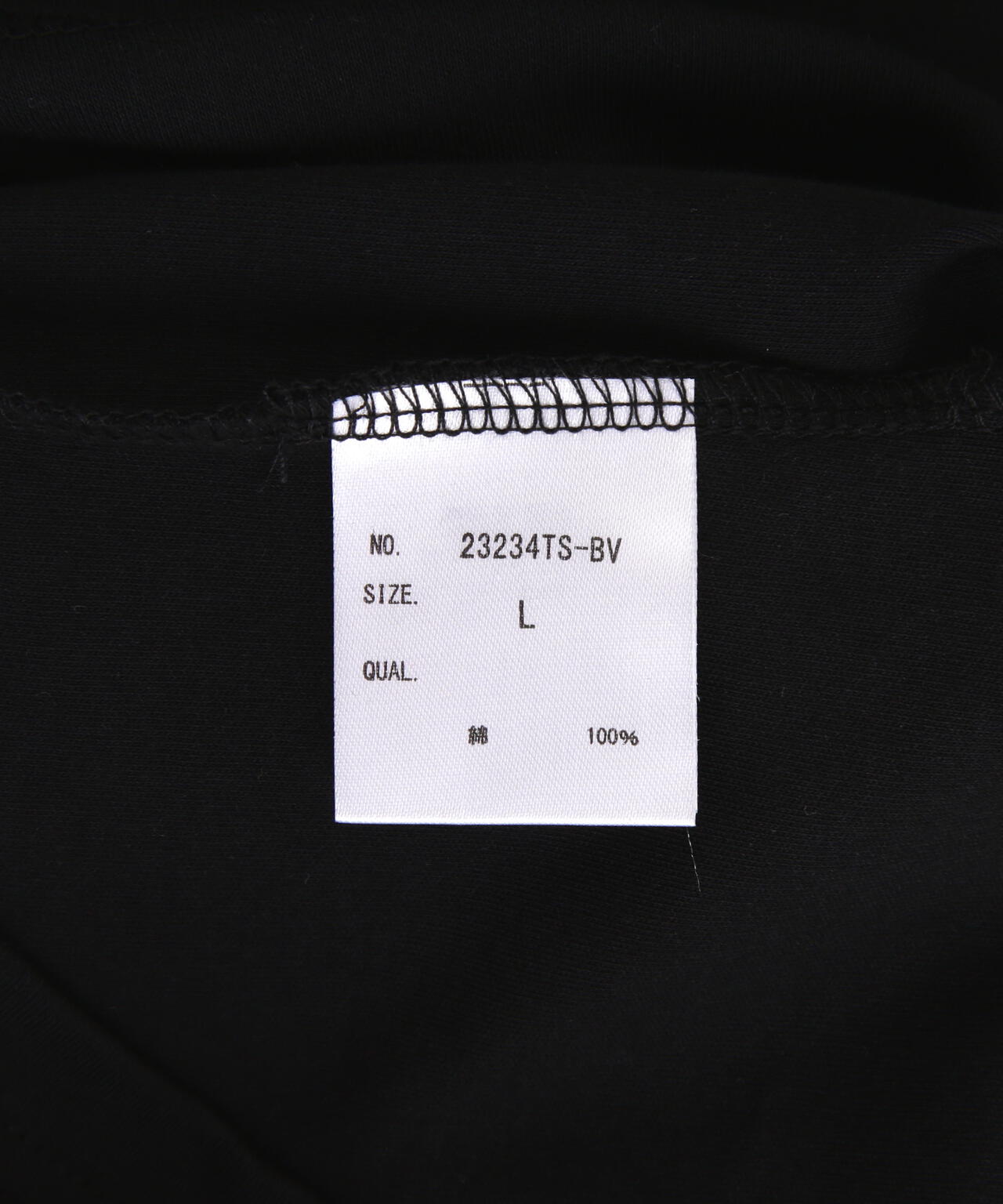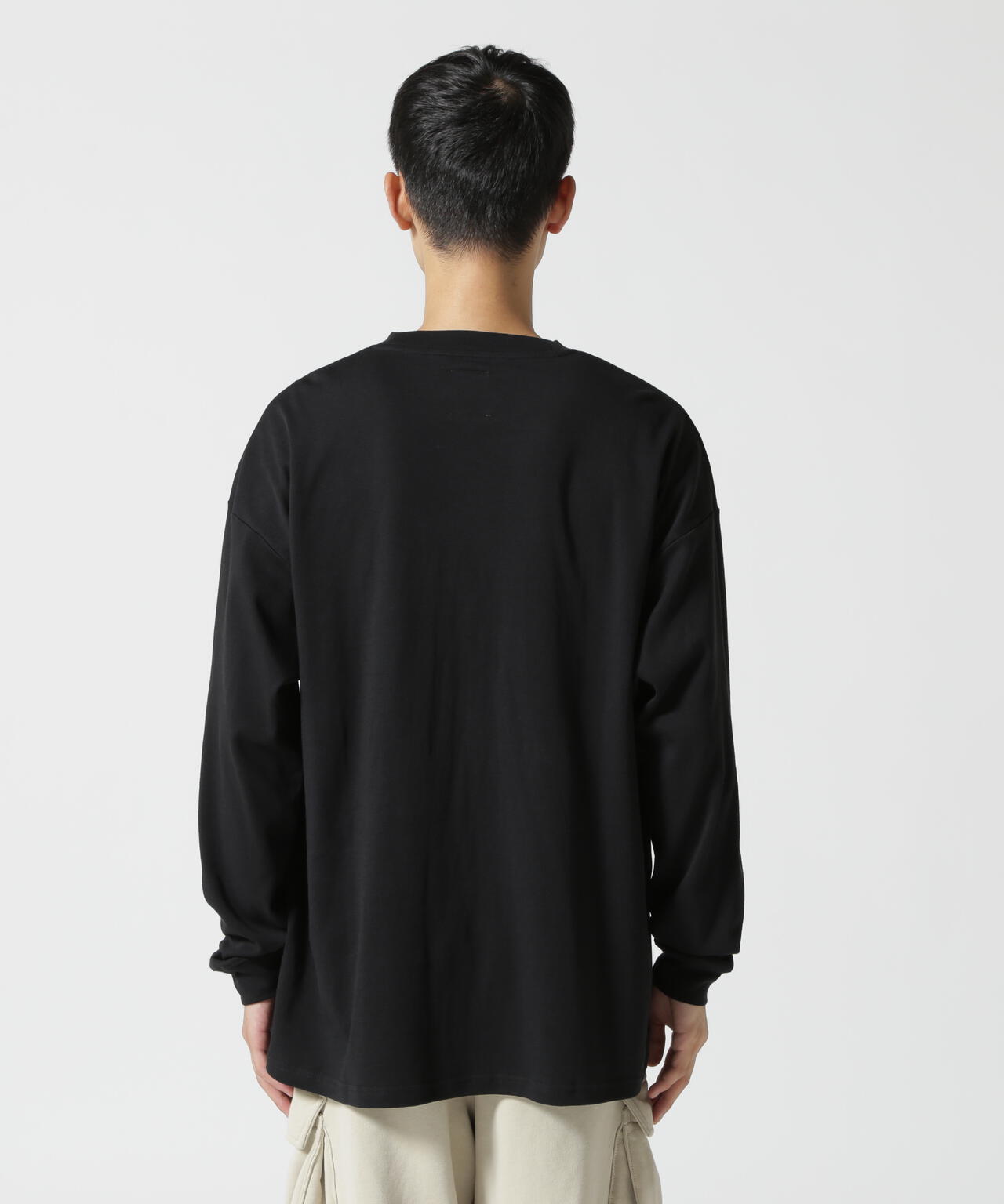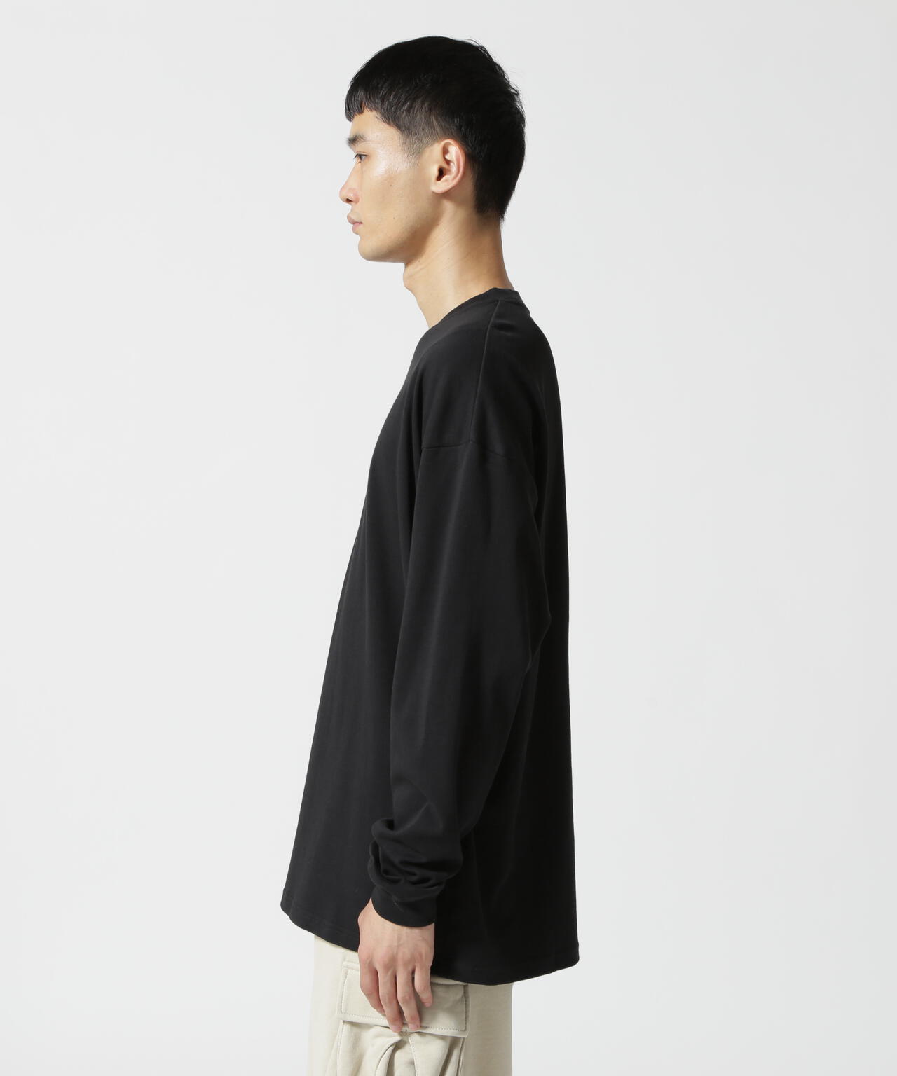 肩口から裾まで入った独特のプリント文字が特徴的なロングスリーブTシャツ