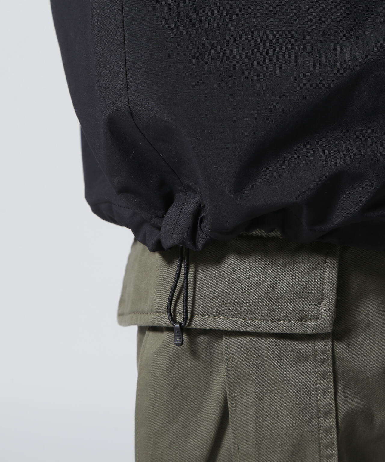 耐久性の高い70デニールリサイクルナイロンを表生地に使用し、やや長めの着丈で保温性を確保。