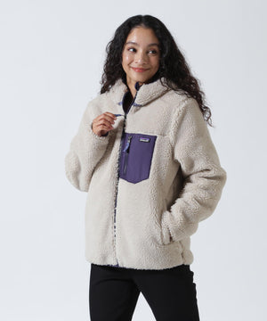 レトロX・スタイルのジッパー式チェストポケットを備えた、リサイクル・ポリエステル100%の6ミリ厚パイル・フリース面でも着用できるリバーシブルのデザイン