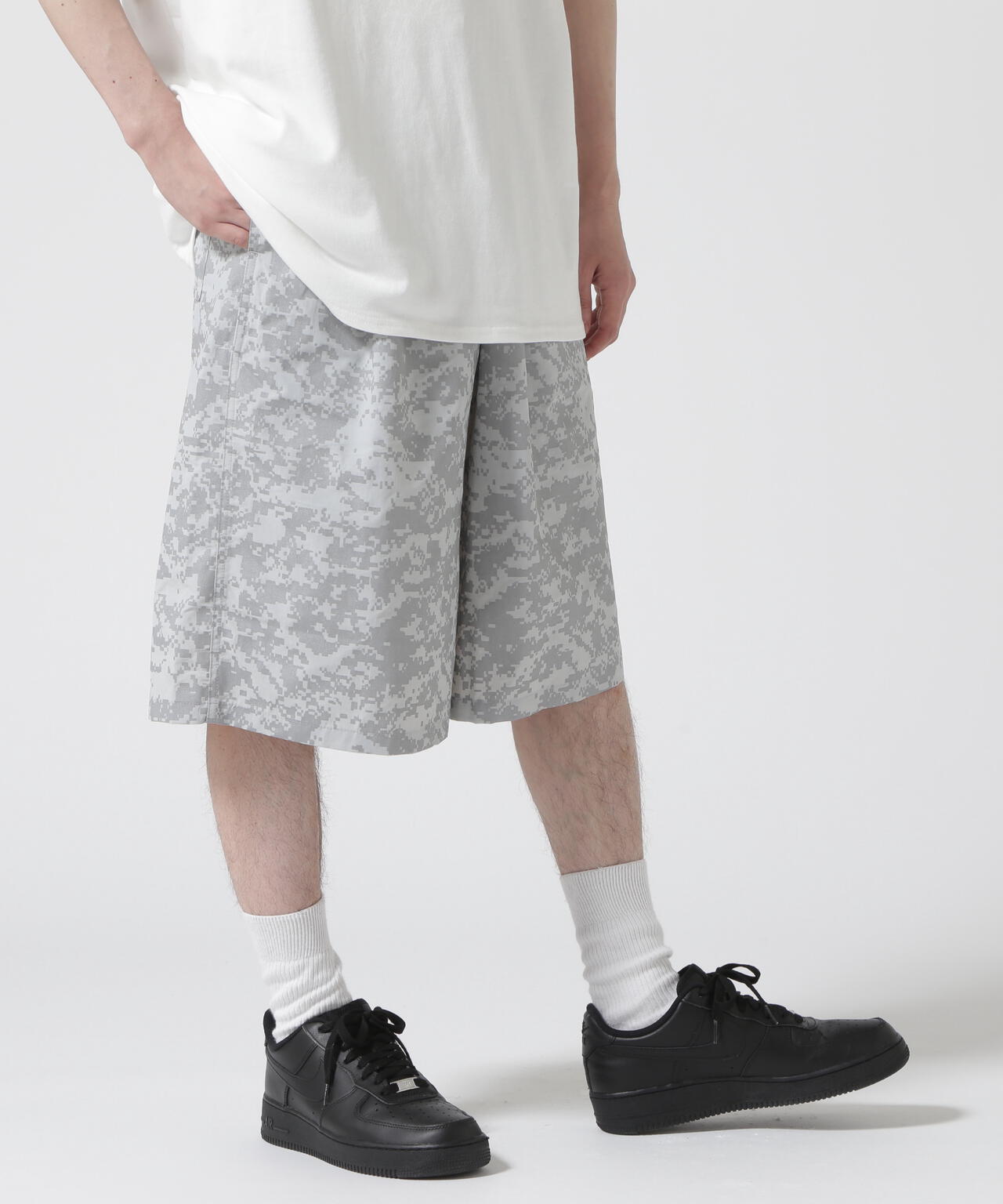 速乾性、UVカットに優れたサプレックスナイロンにオールオーバーでデジカモ柄のリフレクタープリントを施したショーツ。