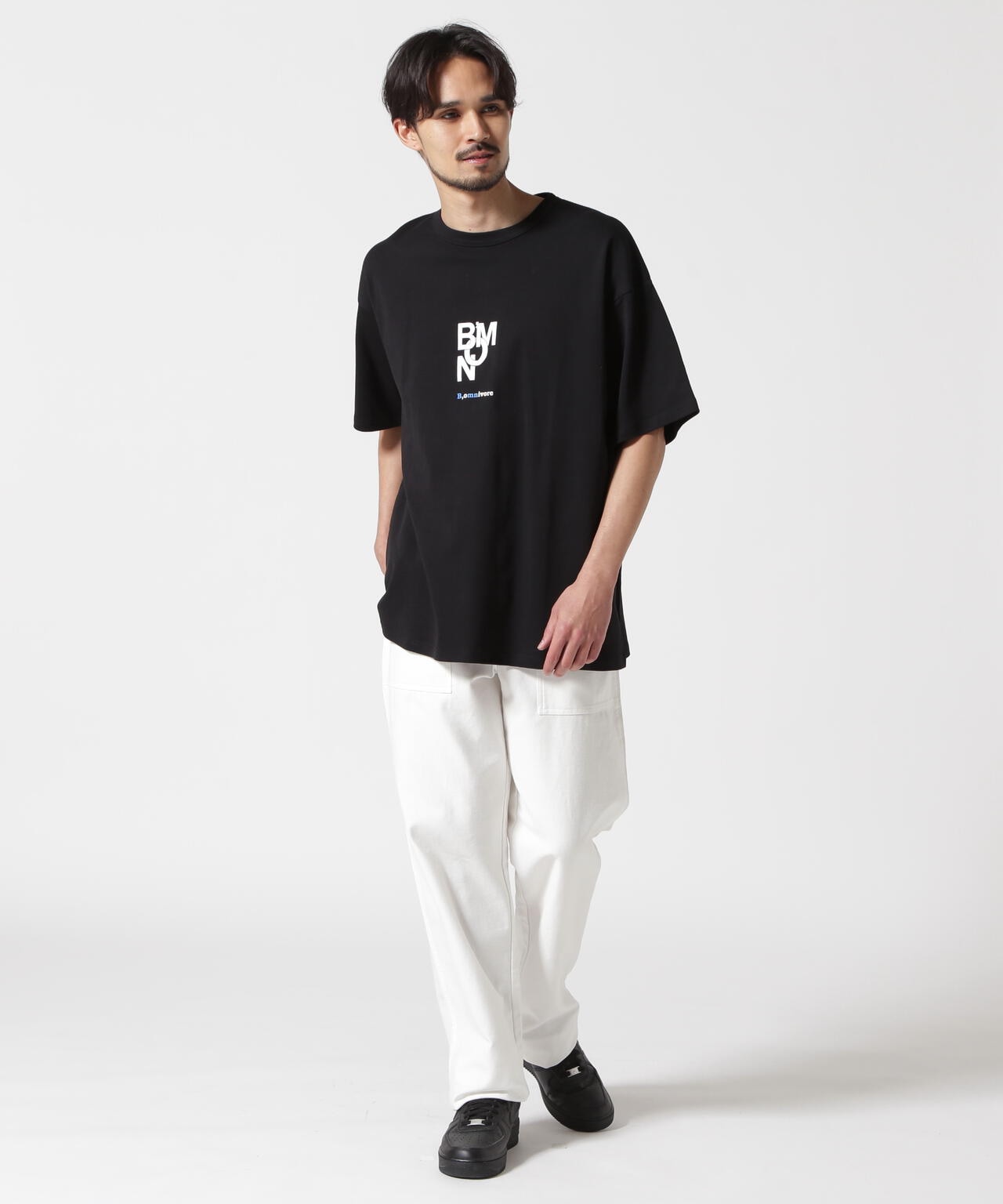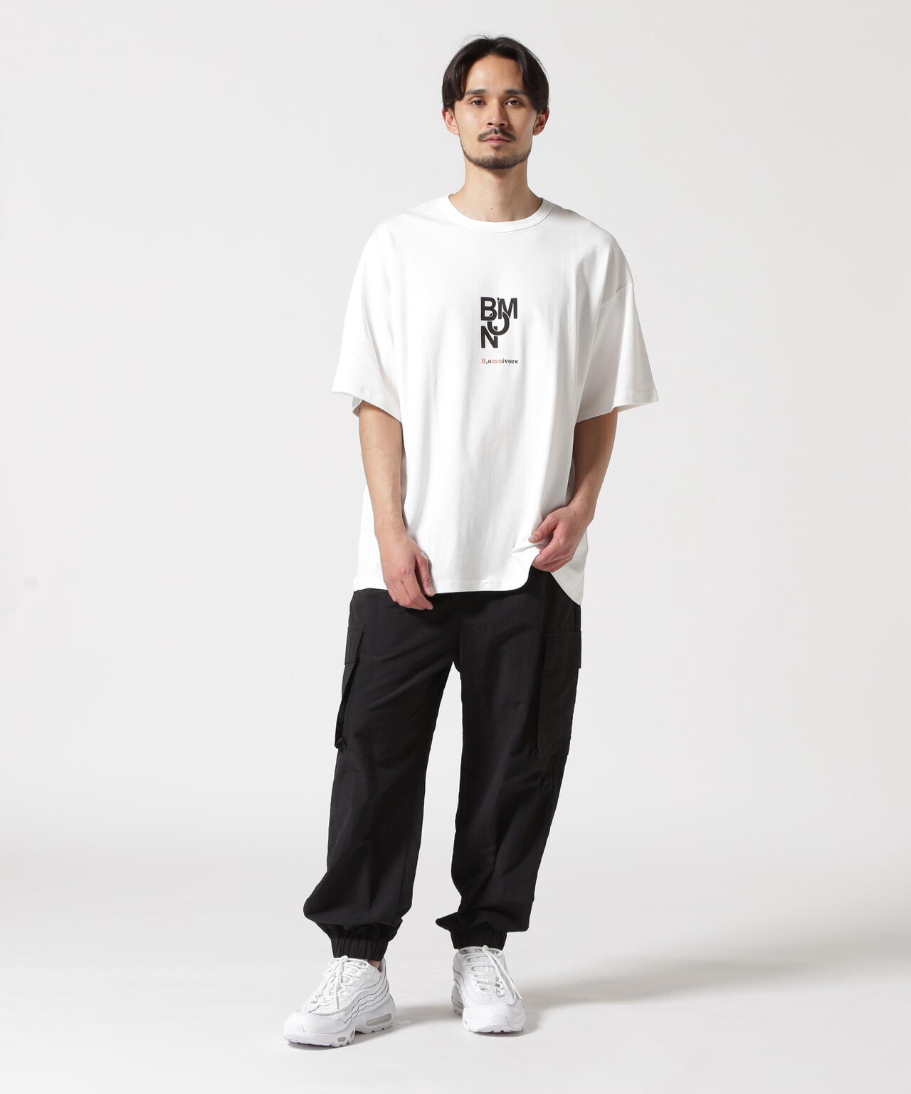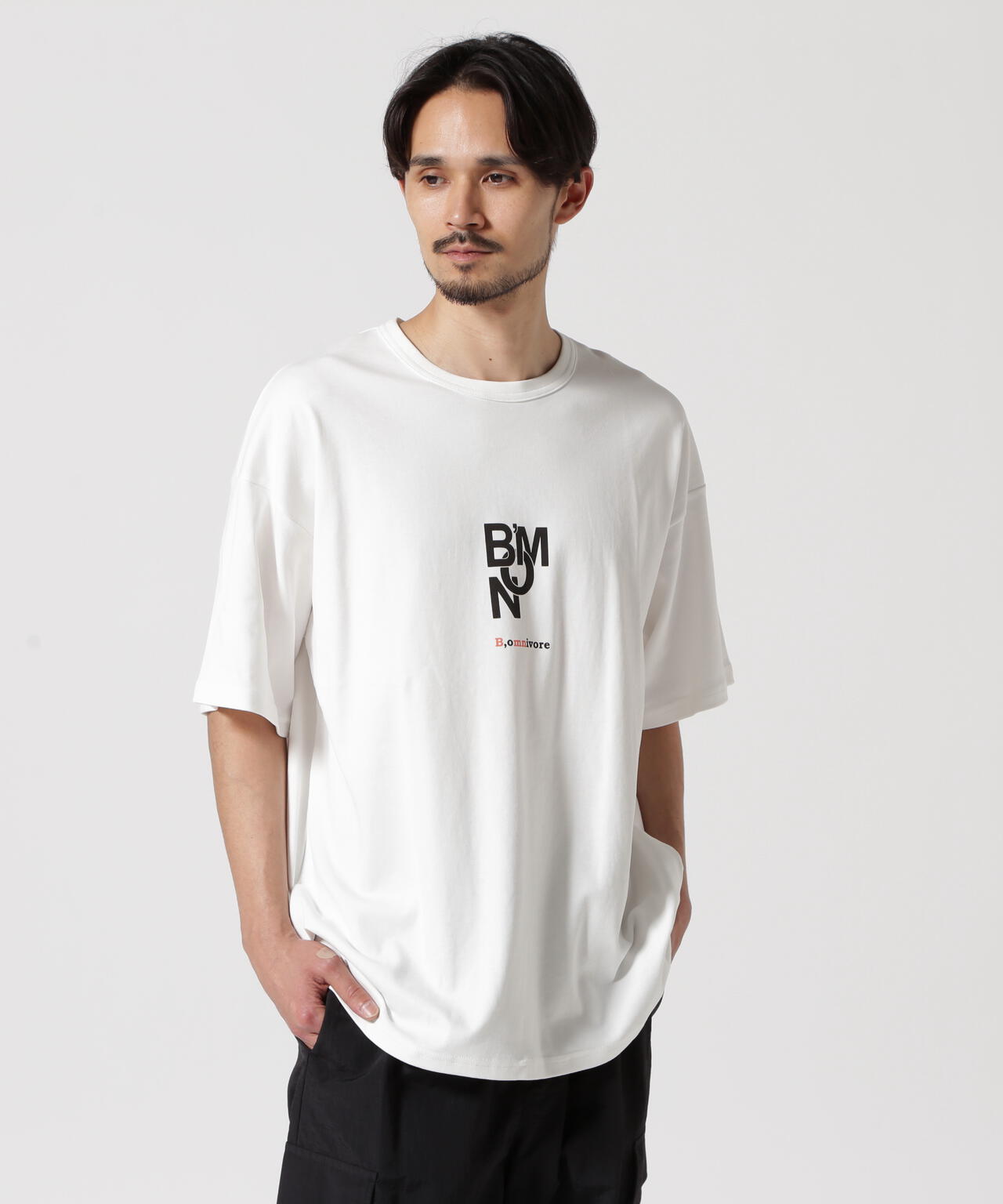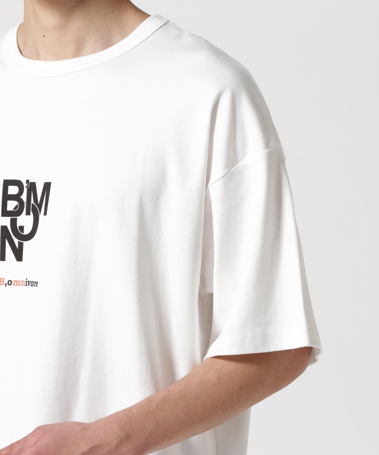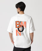 フロント、バック両面プリント入りのショートスリーブTシャツ。