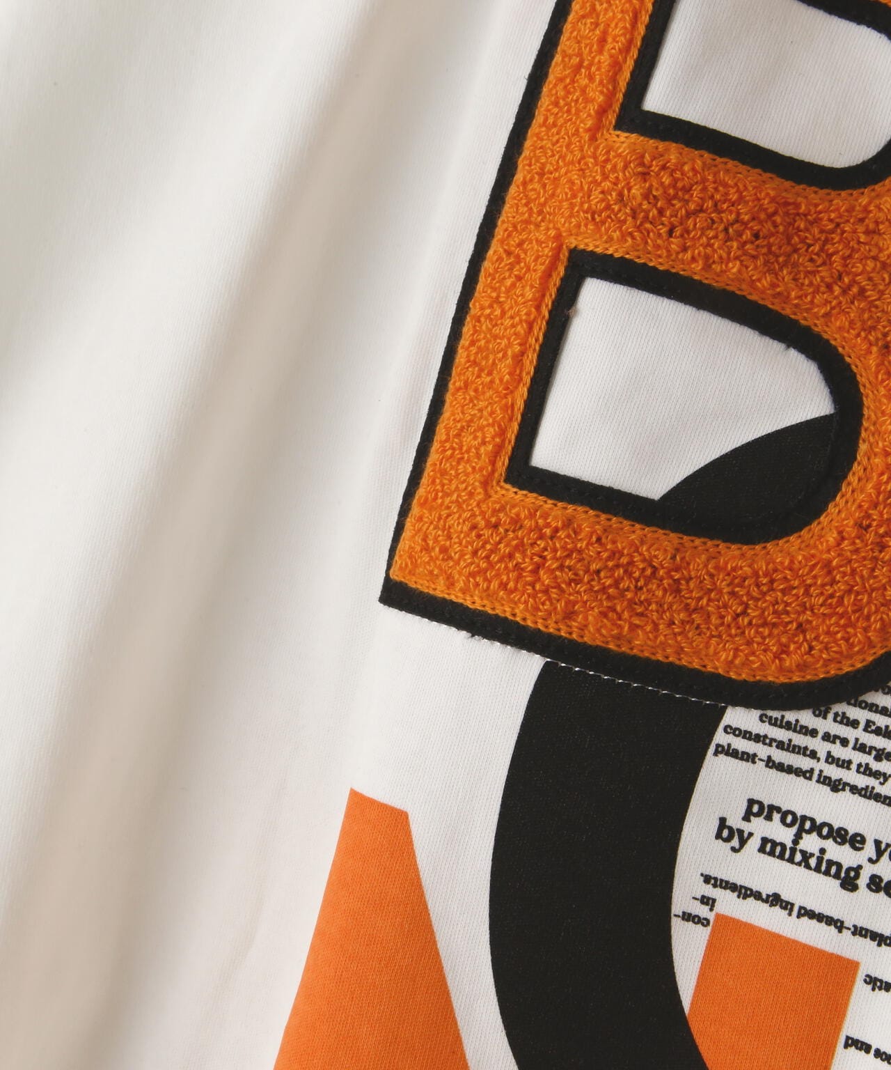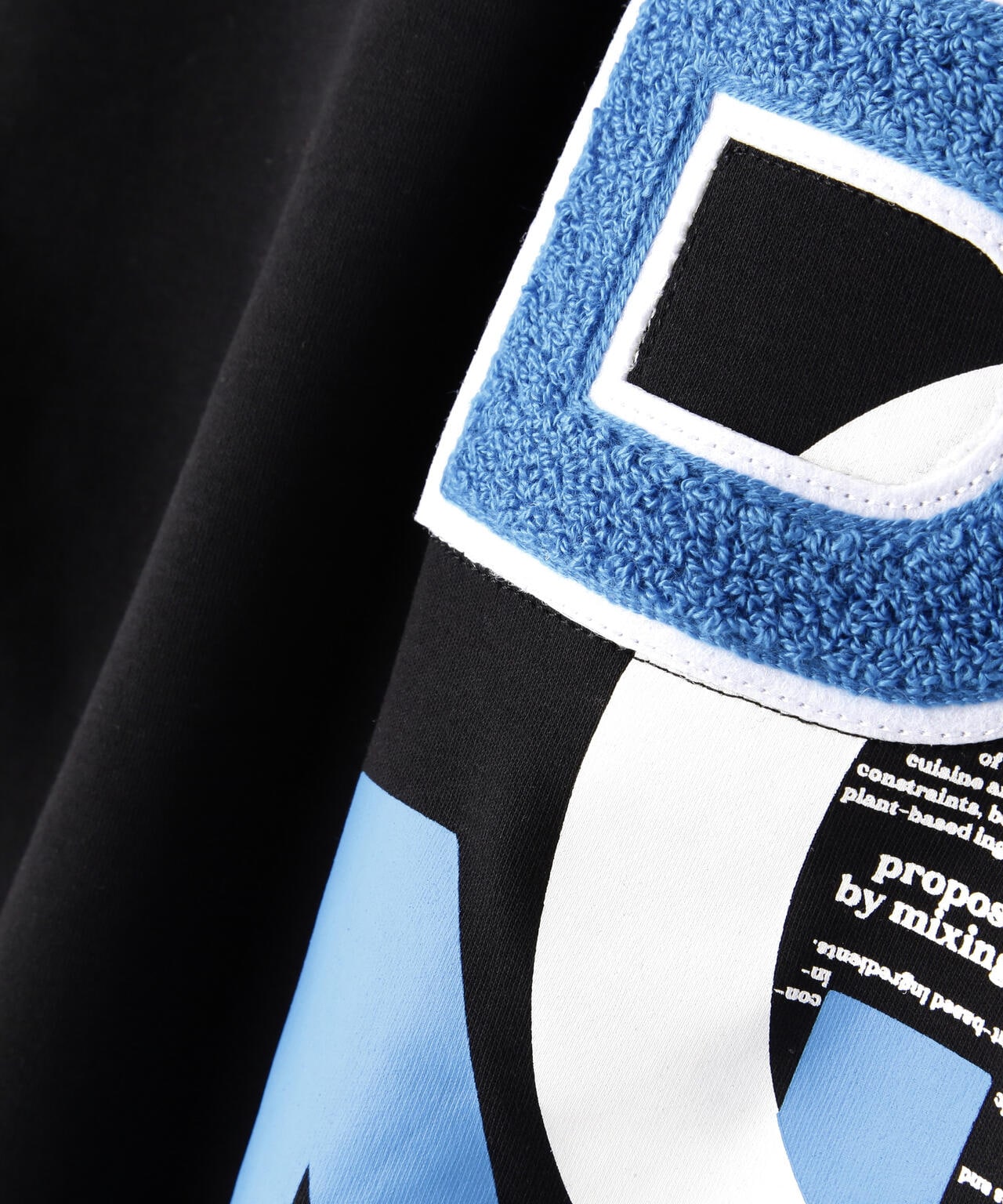バックプリントの異素材を組み合わせたユニークなプリントが際立つ。