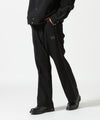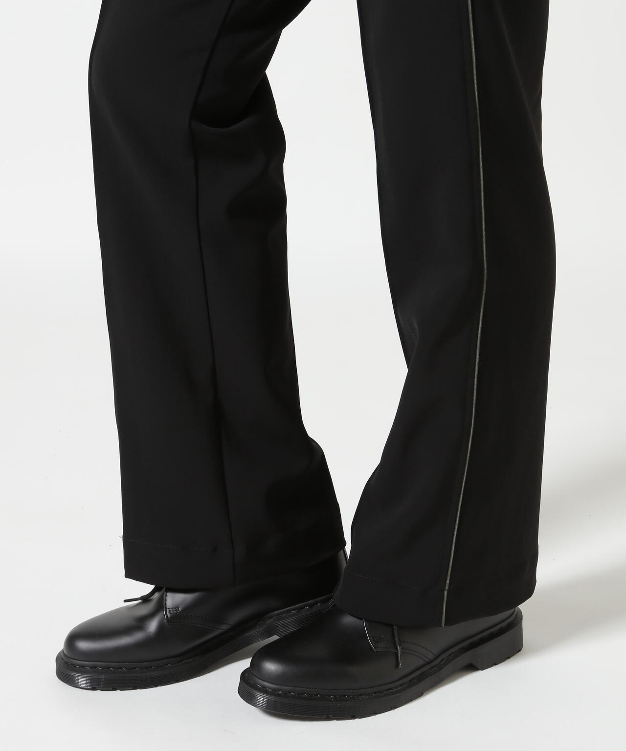 蝶の刺繍やサイドのパイピング飾り、スナップボタン使いなど、ウェスタンウェアの装飾的なムードを取り入れたブーツカットパンツ。