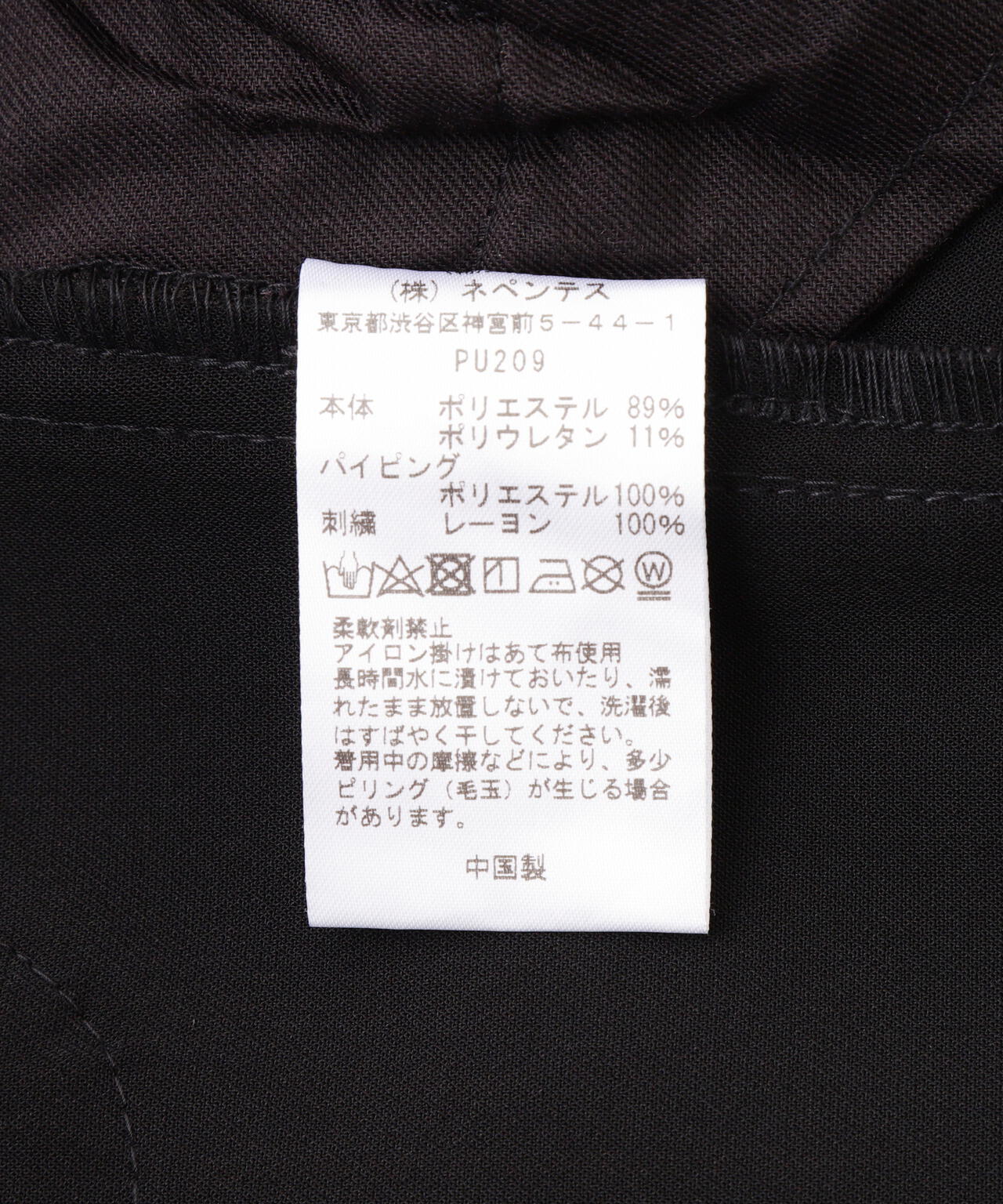 (本体)ポリエステル 89% ポリウレタン 11%(パイピング部分)ポリエステル 100%(ししゅう部分)レーヨン 100%