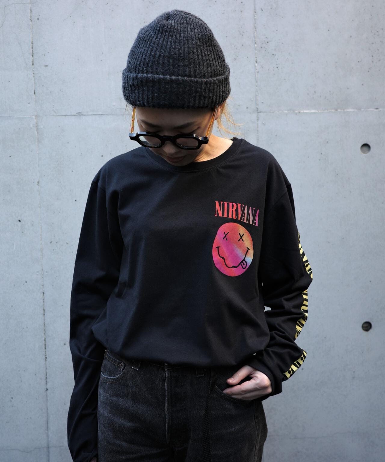 NIRVANA/ニルヴァーナ GRADIENT HAPPY FACE L/S TEE グラディエントスマイルロンT
