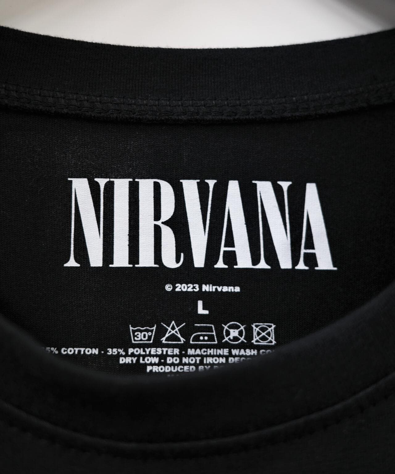 カート・コバーン、クリス・ノヴォセリック、デイヴ・グロールを中心とした伝説のグランジ/オルタナティブ・ロックバンド「NIRVANA」ニルヴァーナのオフィシャルTシャツ。