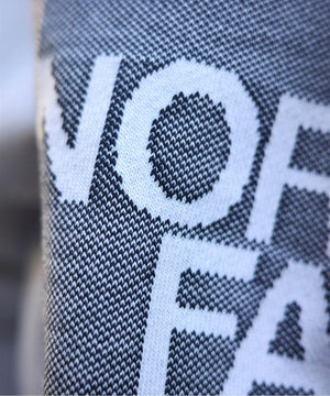 微起毛で暖かみのあるコットンのスウェット生地を採用しています。特殊な編み機を使用して、ロゴ部分をジャカードで表現。