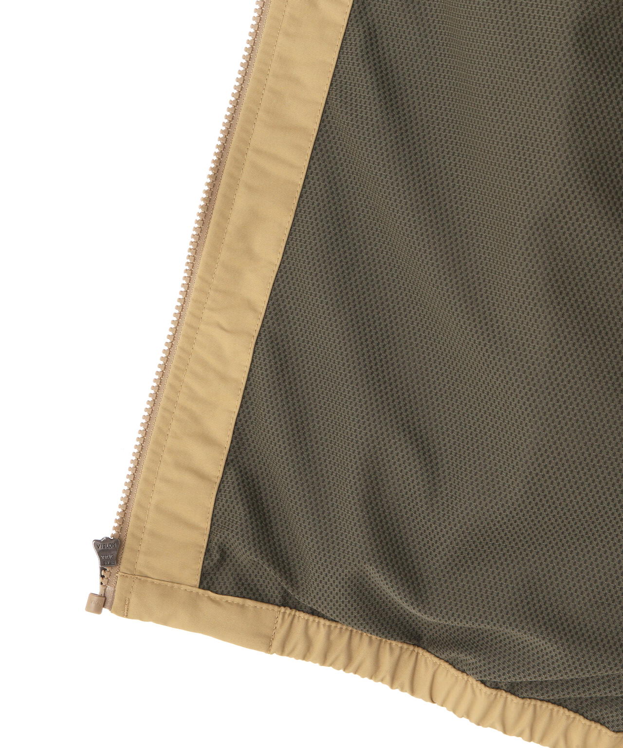 リサイクルされた漁網を使用し海洋プラスチック汚染の削減に貢献する、ネットプラス・ポストコンシューマーリサイクル・ナイロン100%のファイユを使用し、有機フッ素化合物(PFC/PFAS)不使用のDWR(耐久性撥水)加工済み。