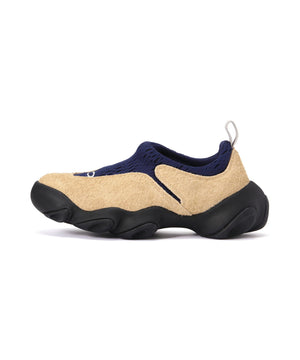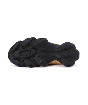 流線形のラインとうねるようなカーブが特徴のアッパーは、スリッポンの持つ可能性をユニークな視点で表現しています。