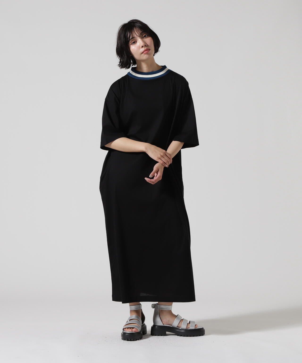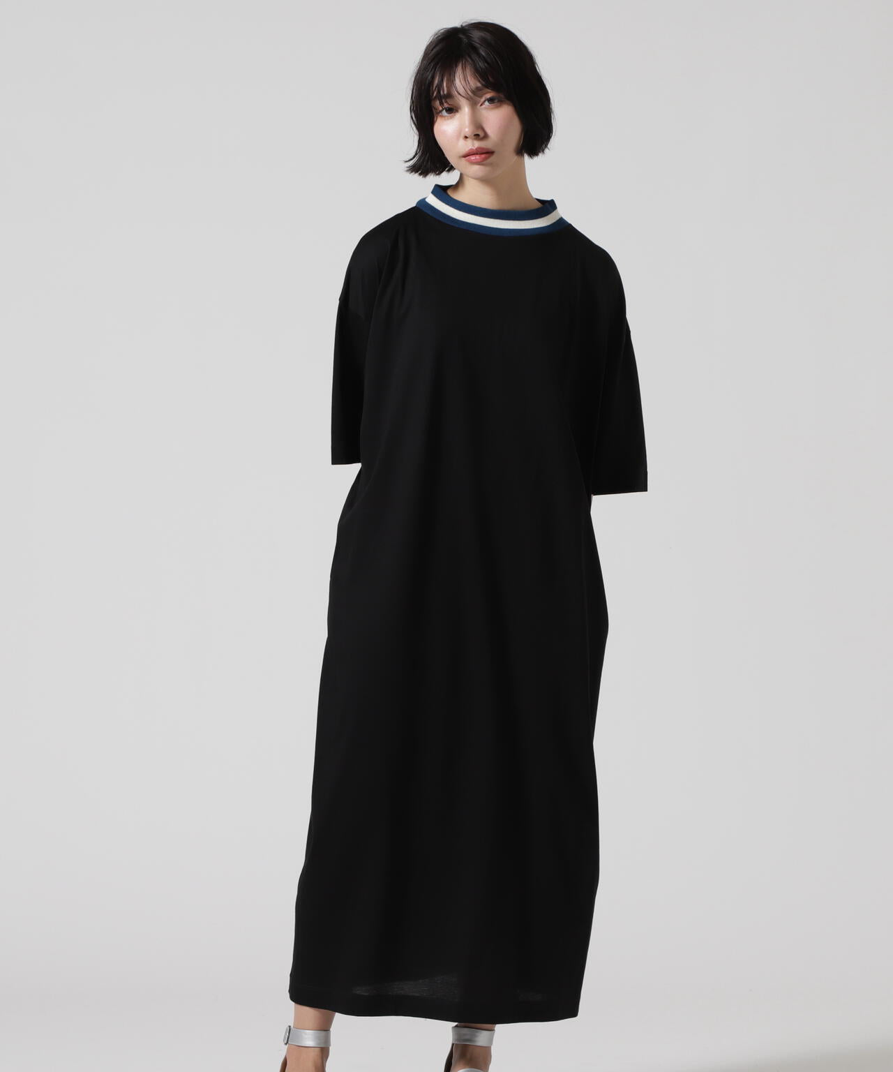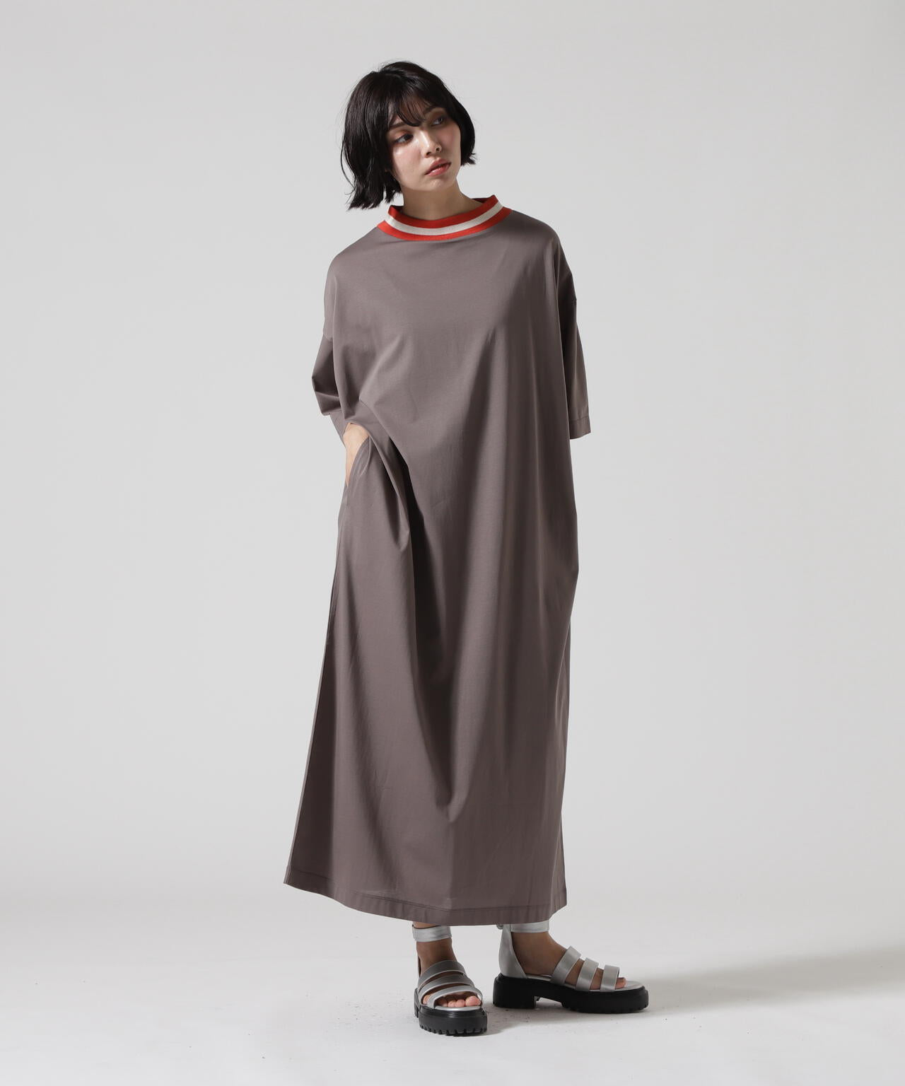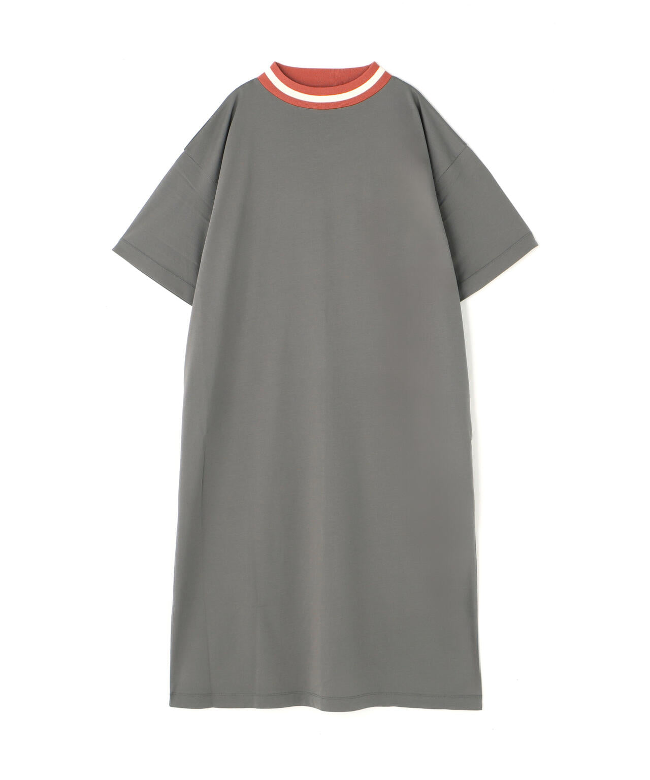 なめらかな肌さわり、適度なハリ、ほのかなツヤ感、薄手だけど度目の詰まったシルケット天竺を使用した配色ネックライン入りのワンピース。