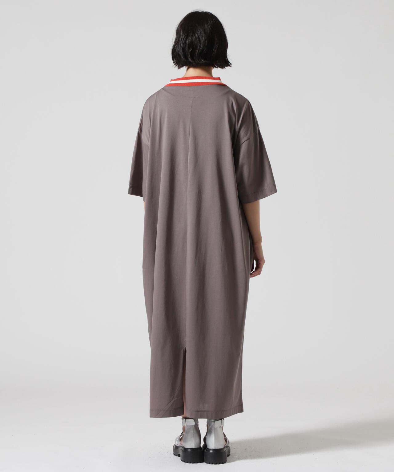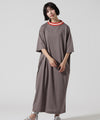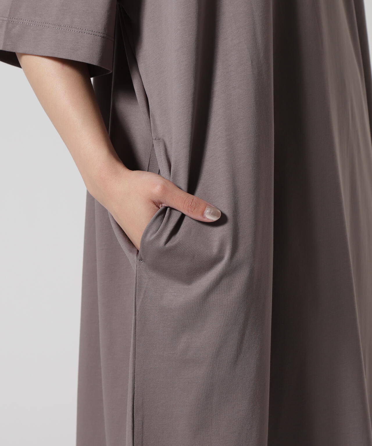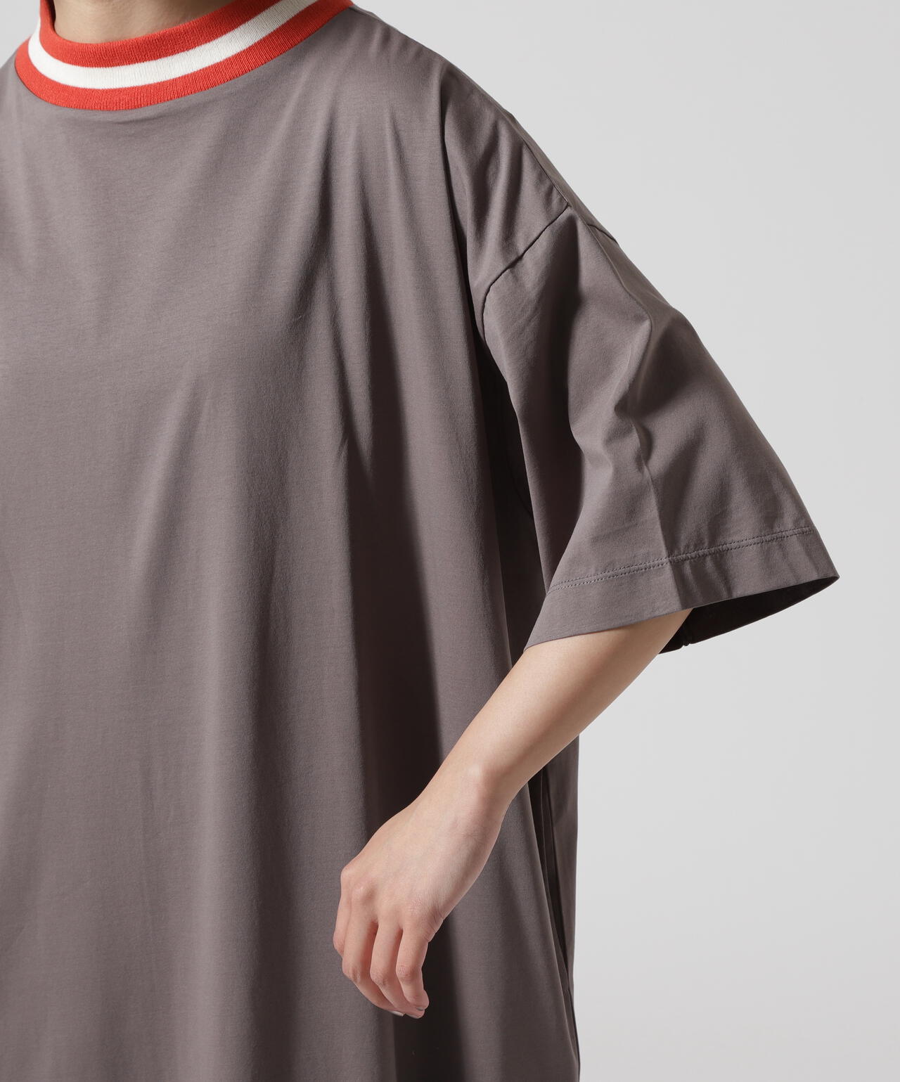 なめらかな肌さわり、適度なハリ、ほのかなツヤ感、薄手だけど度目の詰まったシルケット天竺を使用した配色ネックライン入りのワンピース。