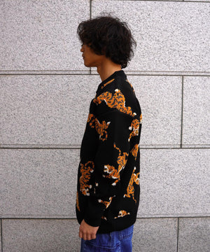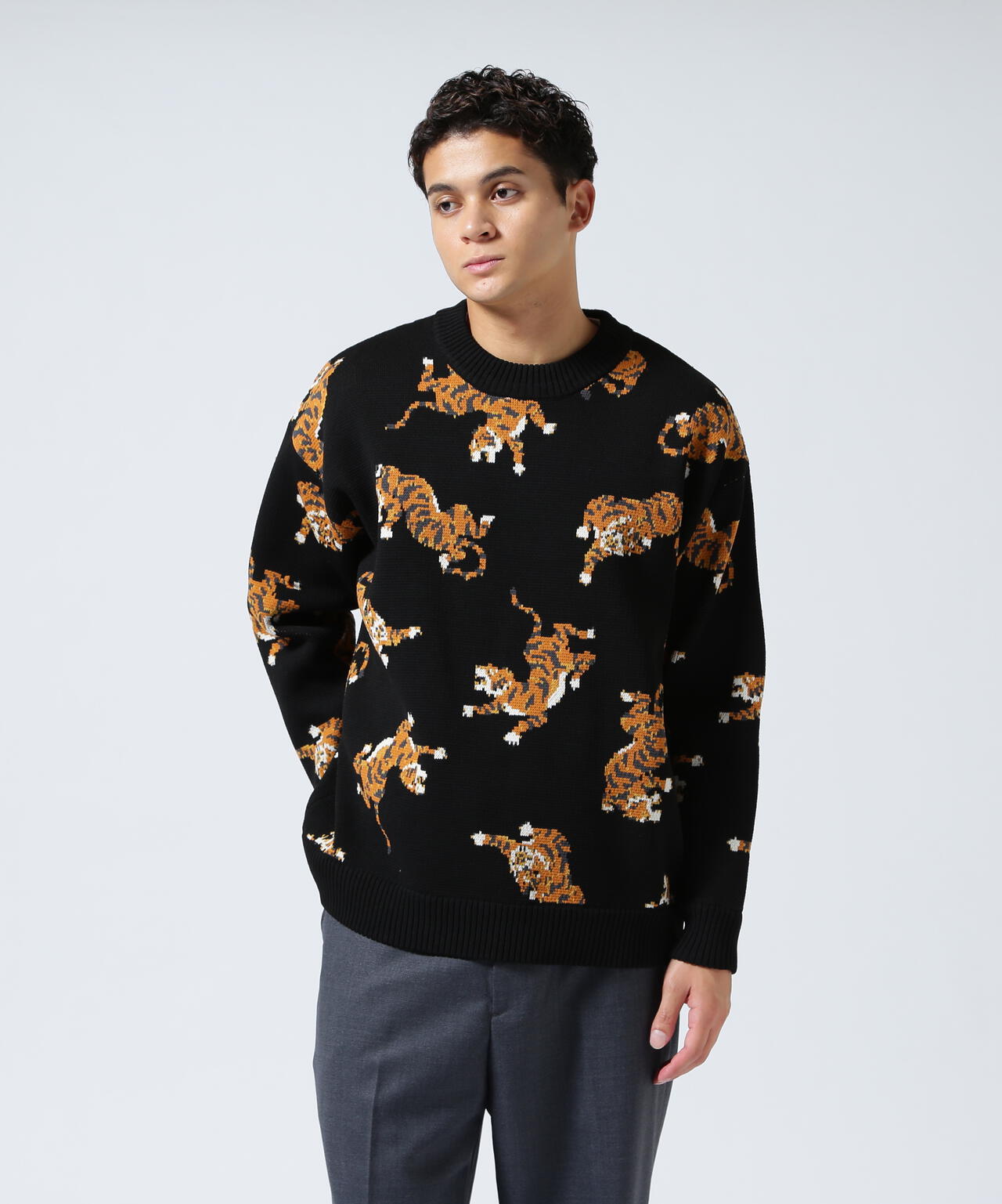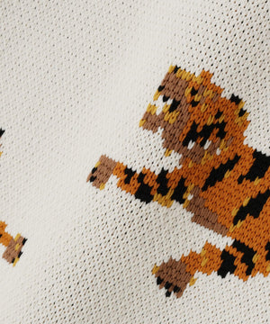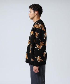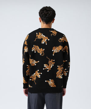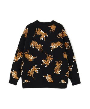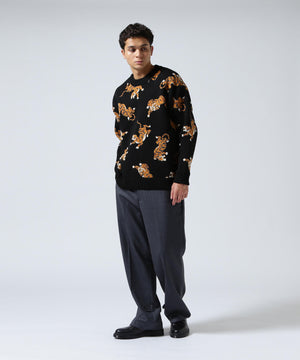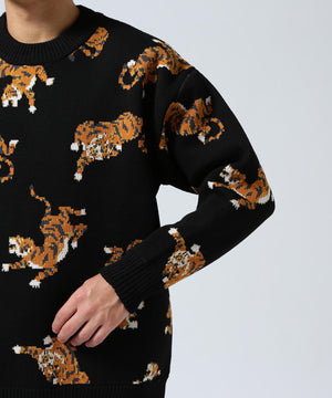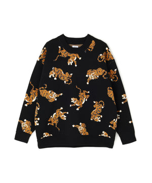 虎が全面に入ったインパクト大のクルーネックニット。